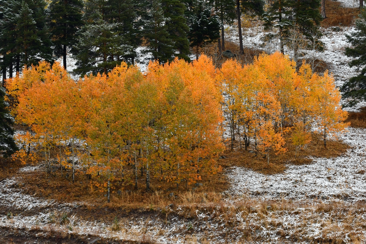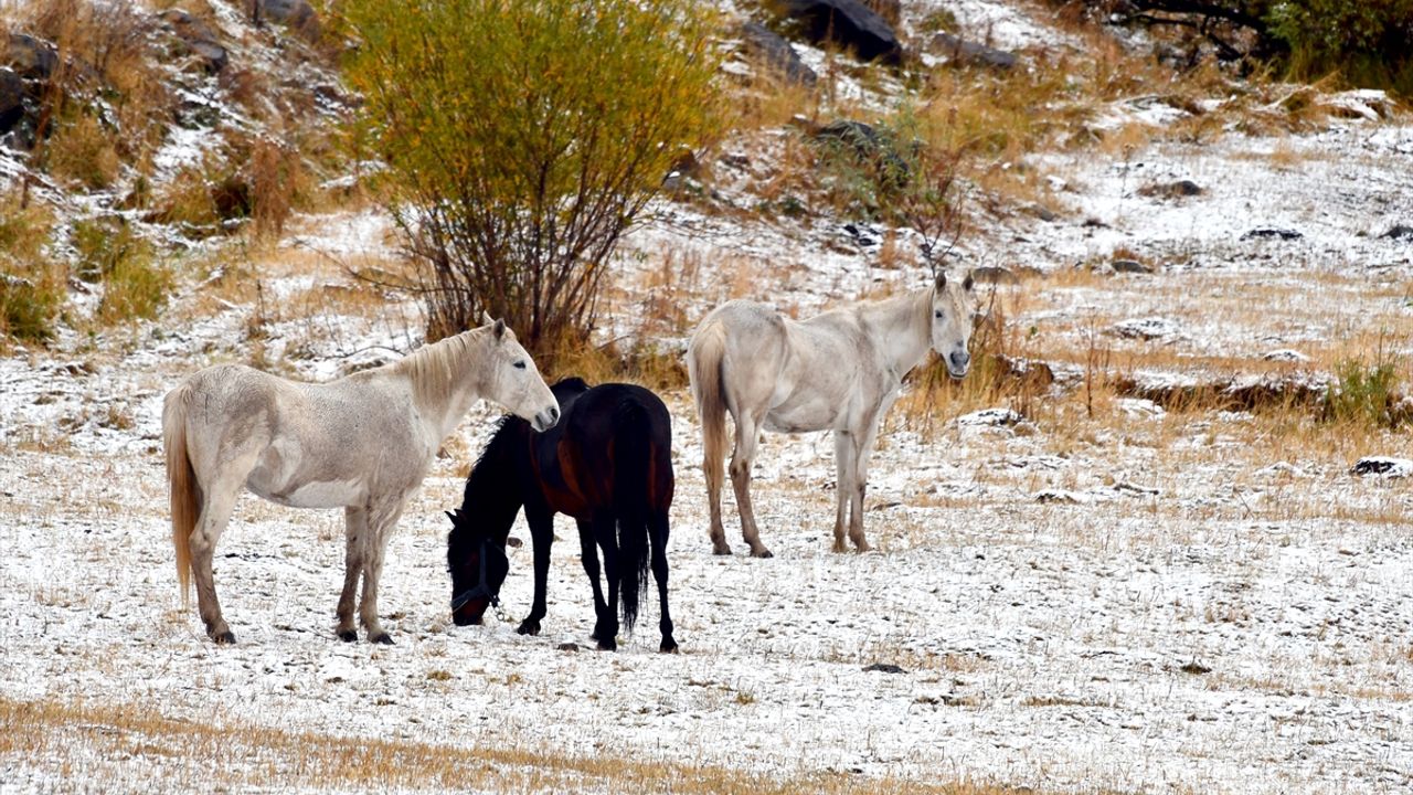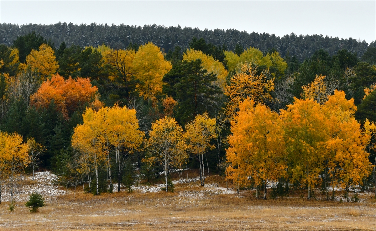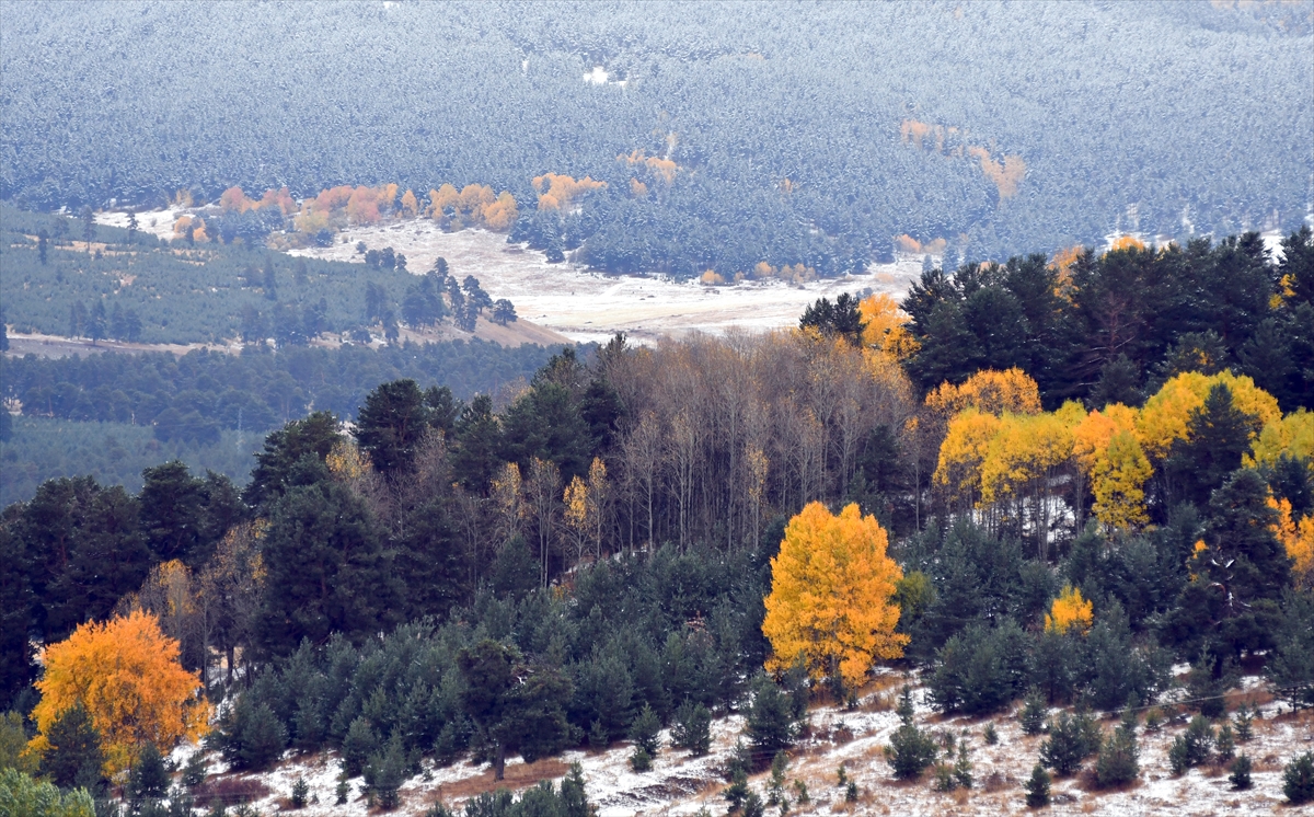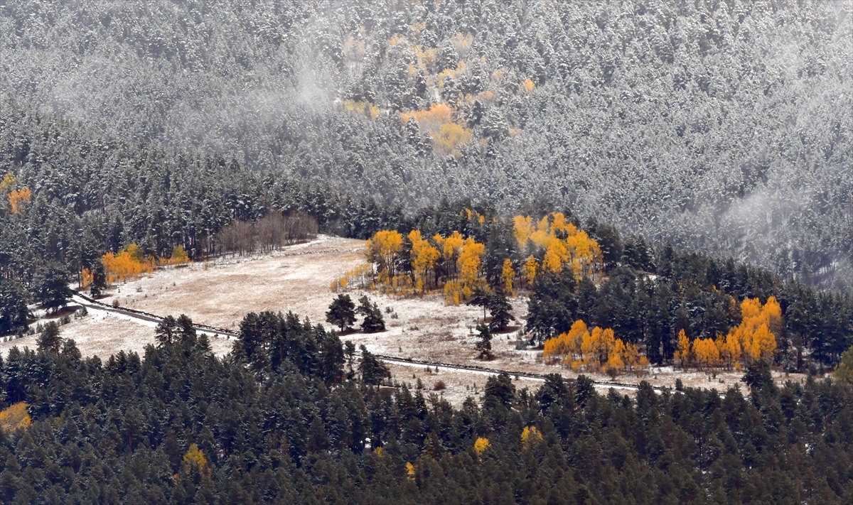 Beyaz örtünün, sonbahar renklerinin hakim olduğu ormanla buluşması güzel manzaralar ortaya çıkardı.