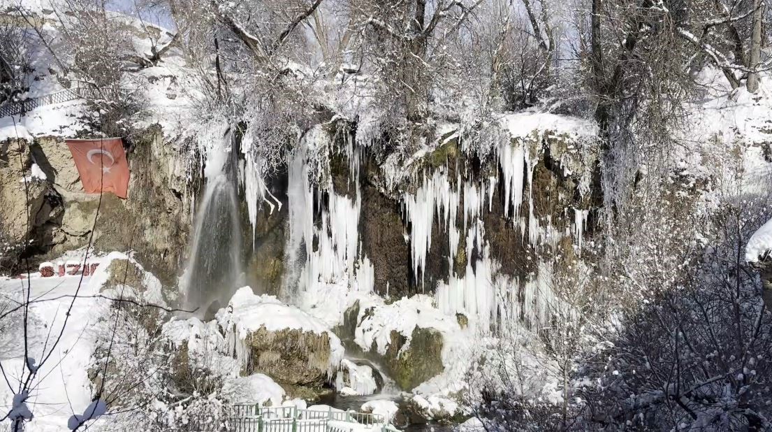 Dondurucu soğuklardan Gemerek ilçesine bağlı Sızır beldesinde bulunan Sızır Şelalesi de nasibi aldı.