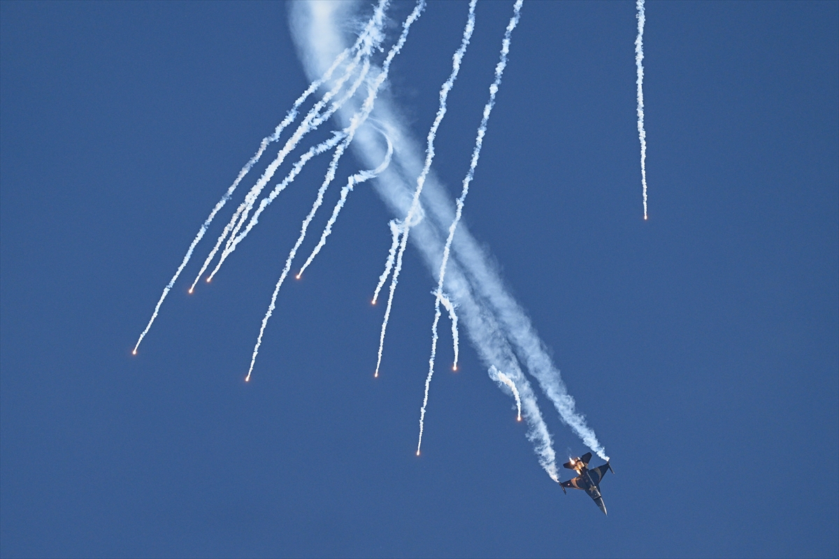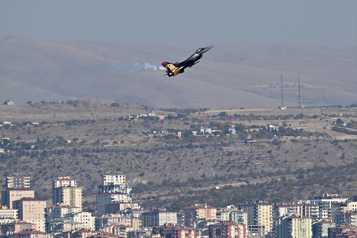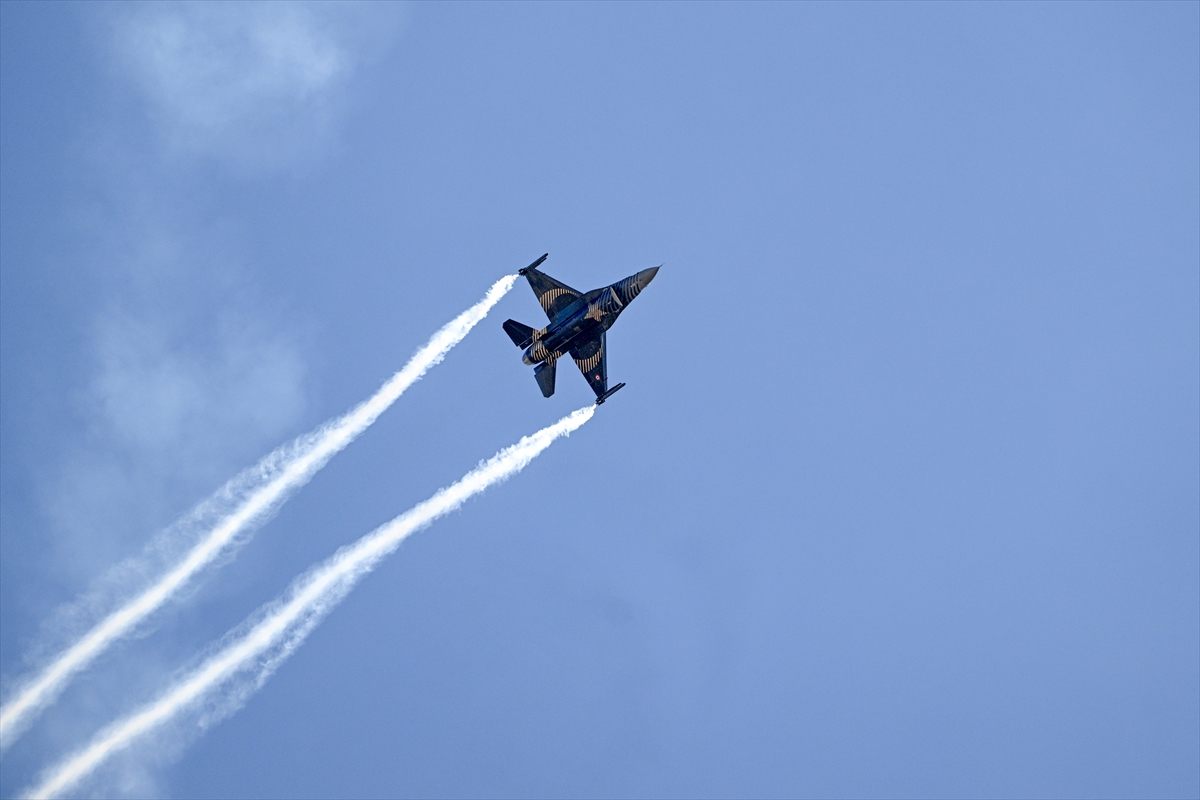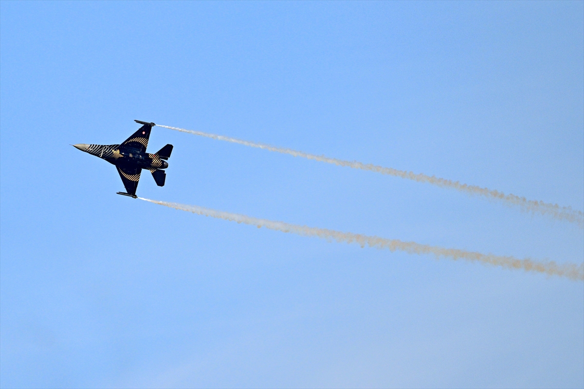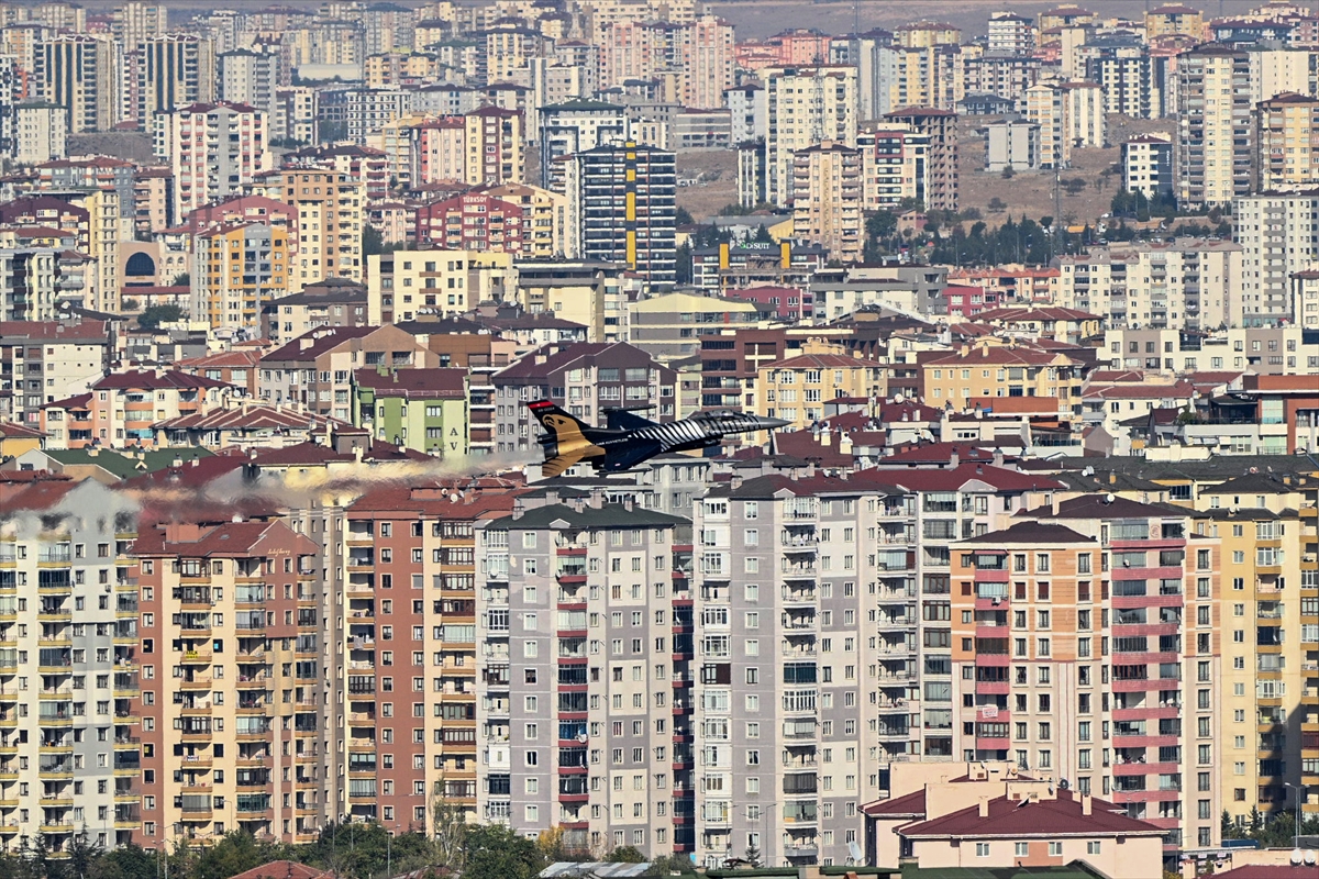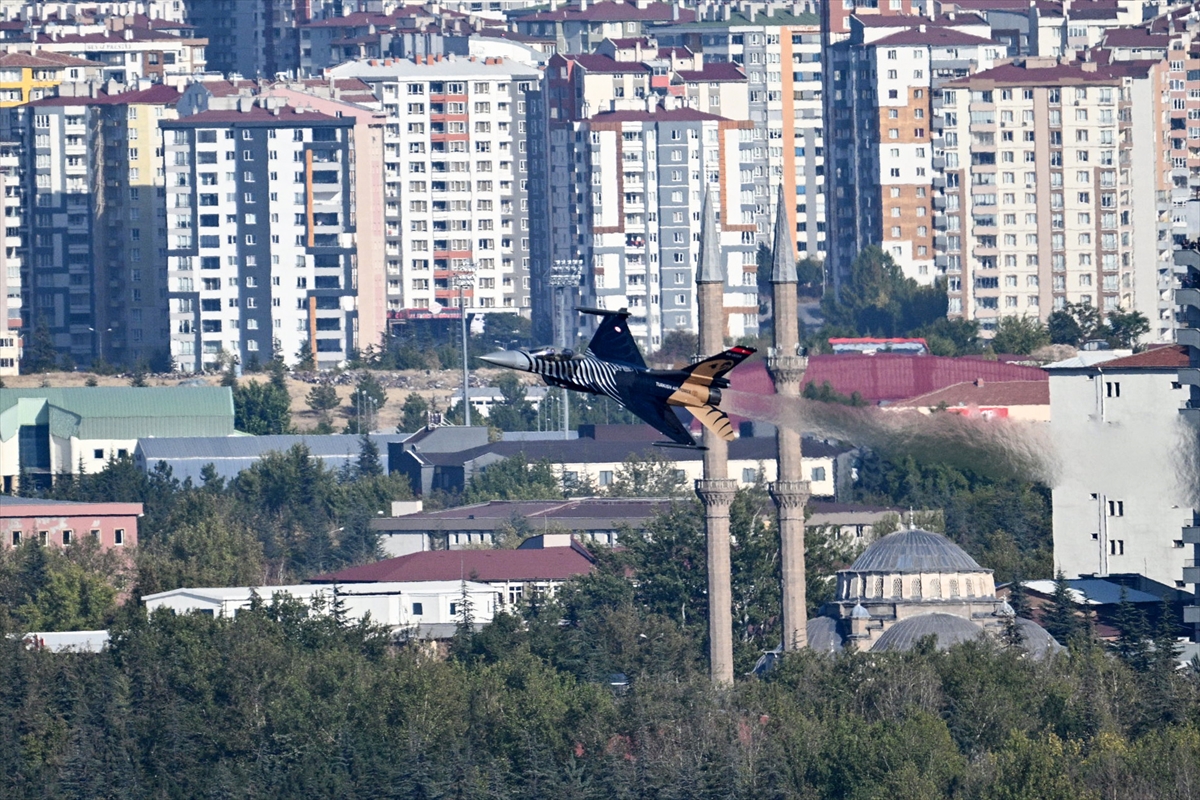 Kayseri 12. Hava Ulaştırma Ana Üs Komutanlığı'ndan havalanan SOLOTÜRK, Recep Tayyip Erdoğan Millet Bahçesi üzerinde gösteri uçuşu yaptı.