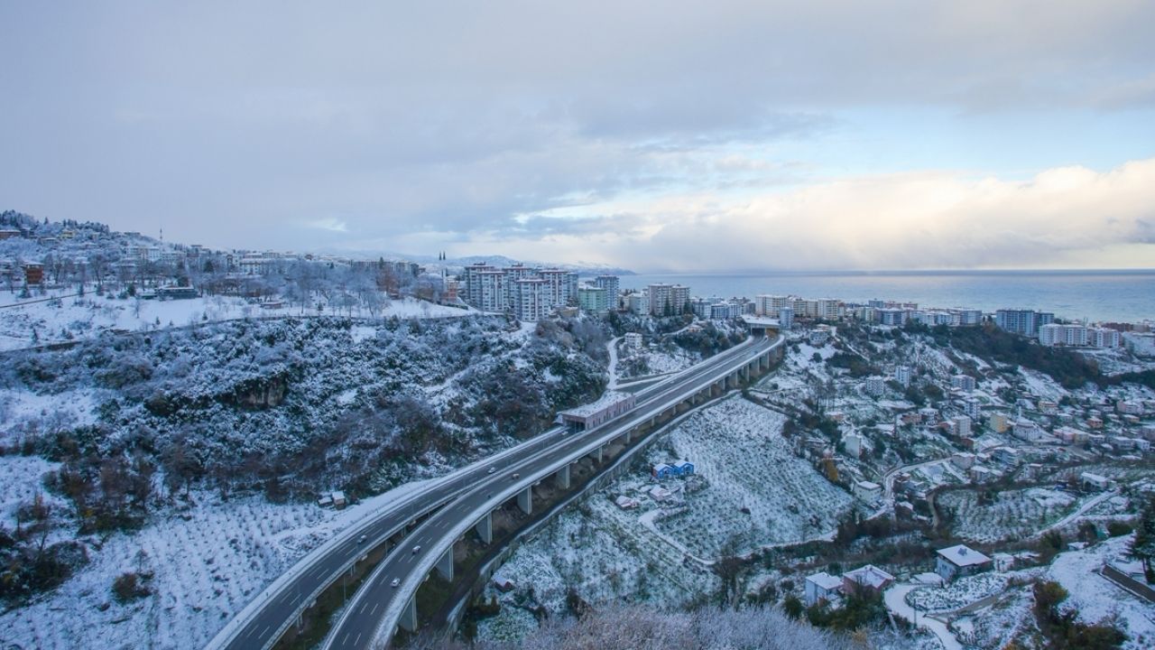 Trabzon'da etkili olan kar yağışının ardından şehir merkezi ve Zigana Dağı beyaz örtüyle kaplandı.