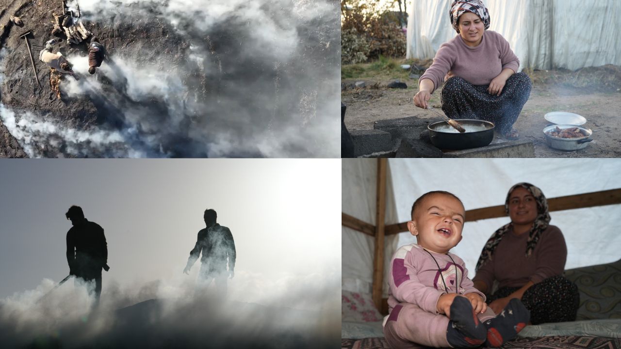Emeklerinin karşılığını zor şartlarda alan kömürcüler, dumanlı havanın içinde alın teriyle ekmeklerini kazanıyor. Üretimin her aşamasında aile dayanışması öne çıkıyor.