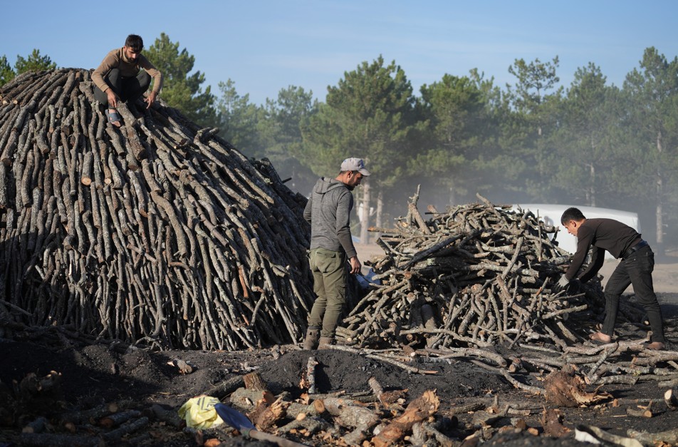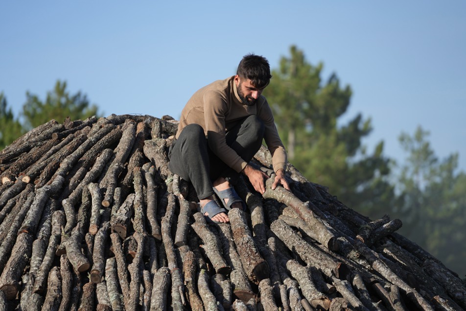 Sabahın ilk ışıklarıyla başlayan mesai, ormanda kesilen meşe odunlarının traktörlerle ocak sahasına taşınmasıyla devam ediyor. Boyutlarına göre ayrılan odunlar, koni şeklinde dizilerek üzerleri saman ve toprakla örtülüyor.