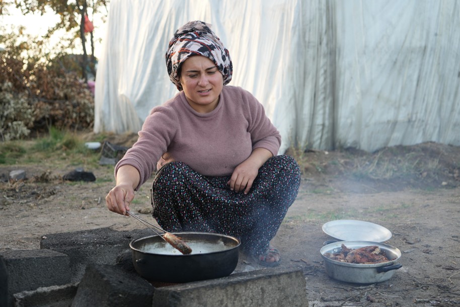 Daha çok yemek ve çocuklarla uğraştığını anlatan Rabia Aksakal da "Diyarbakır'dan buraya kömür yapmaya geldik. Ben çalışmıyorum yemekle uğraşıyorum. İşçiler tutuyoruz onlar sahaya gidiyor odun kesiyor bende burada yemek hazırlıklarını yapıyorum. Çamaşır yıkıyoruz çocuklara bakıyorum. Çok yoğun olduklarında onlara da yardım ediyoruz" şeklinde konuştu.