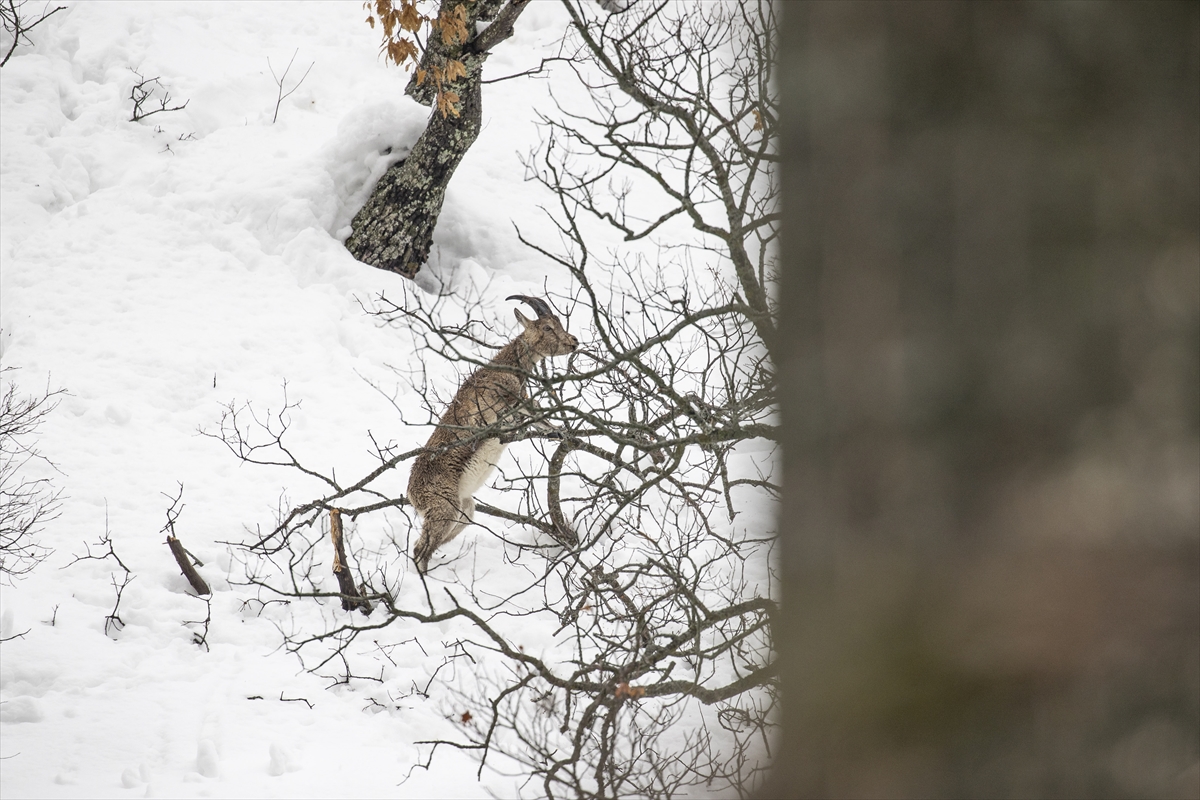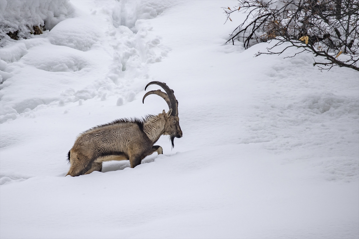 Kar kalınlığının yer yer 2 metreyi aştığı milli parkta, şu sıralar yaban keçileri, domuzlar ve akbabalar besin bulmakta zorlanıyor.