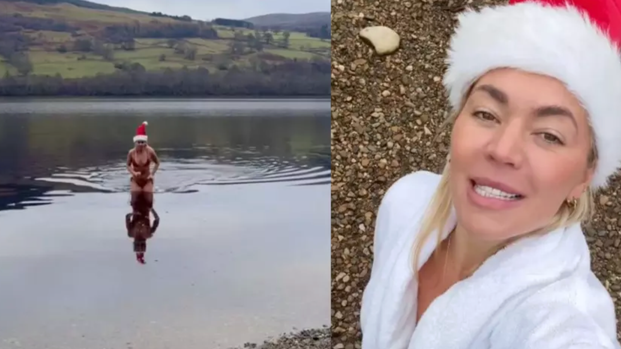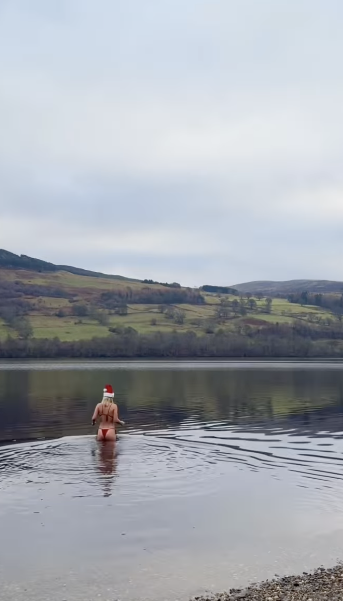Soğuk havaya aldırmayan ünlü isim, Boxing Day’de kırmızı bikinisini giyerek buz gibi bir İskoç gölünde yüzdü.