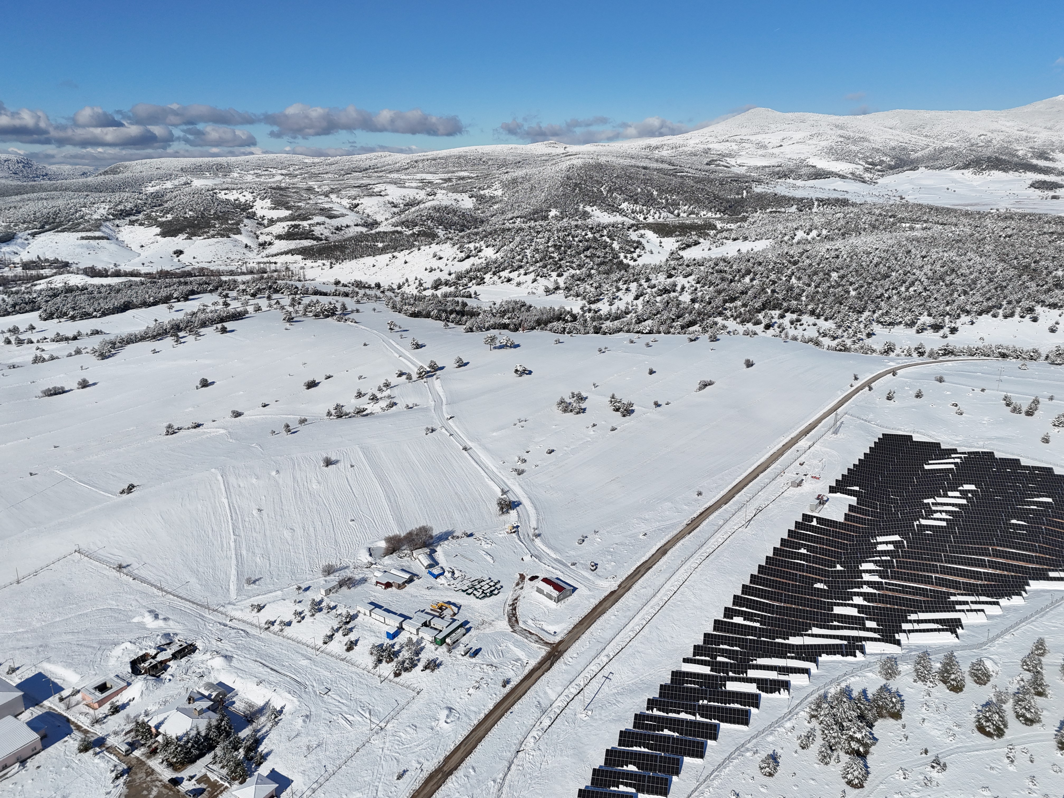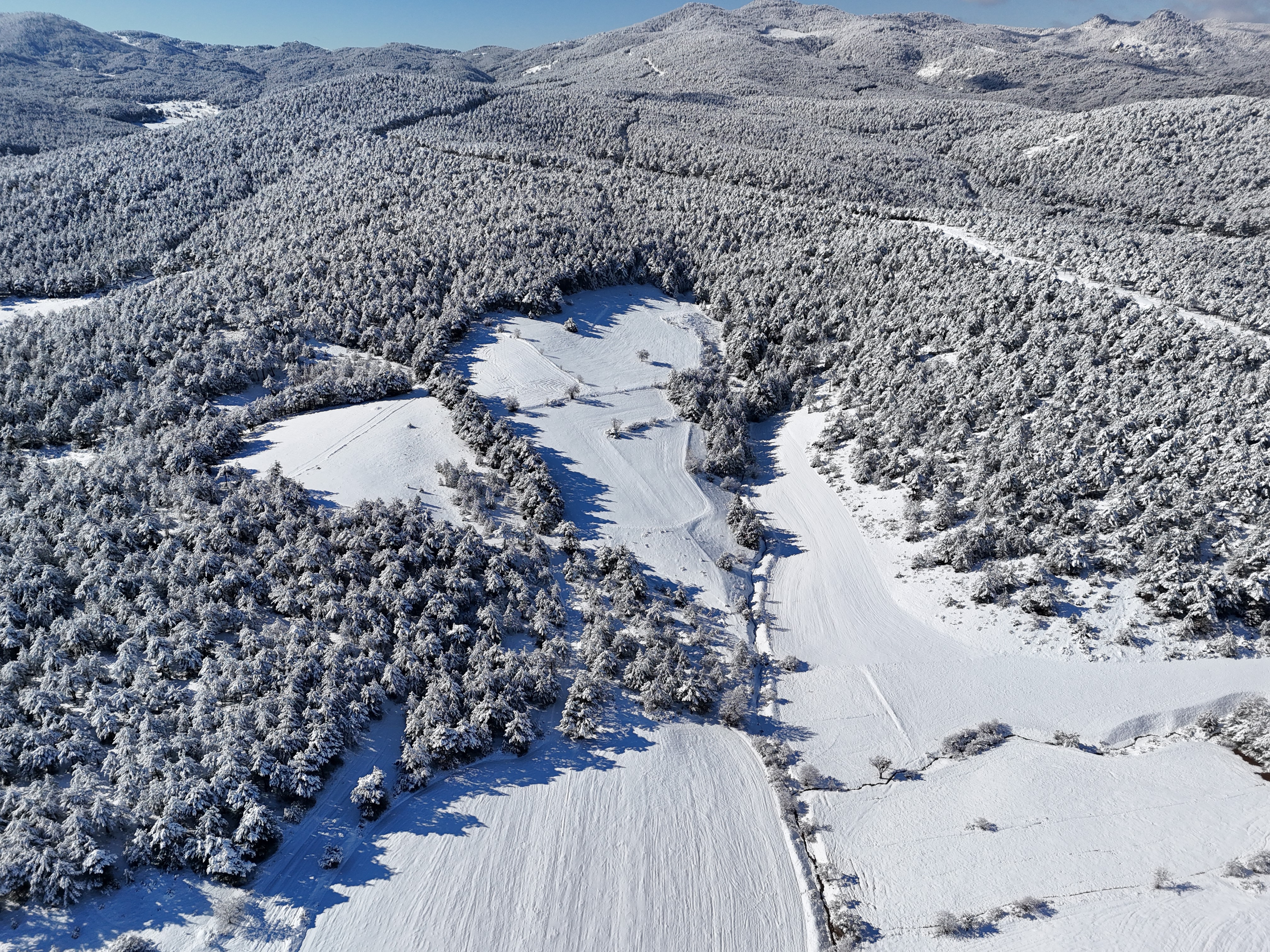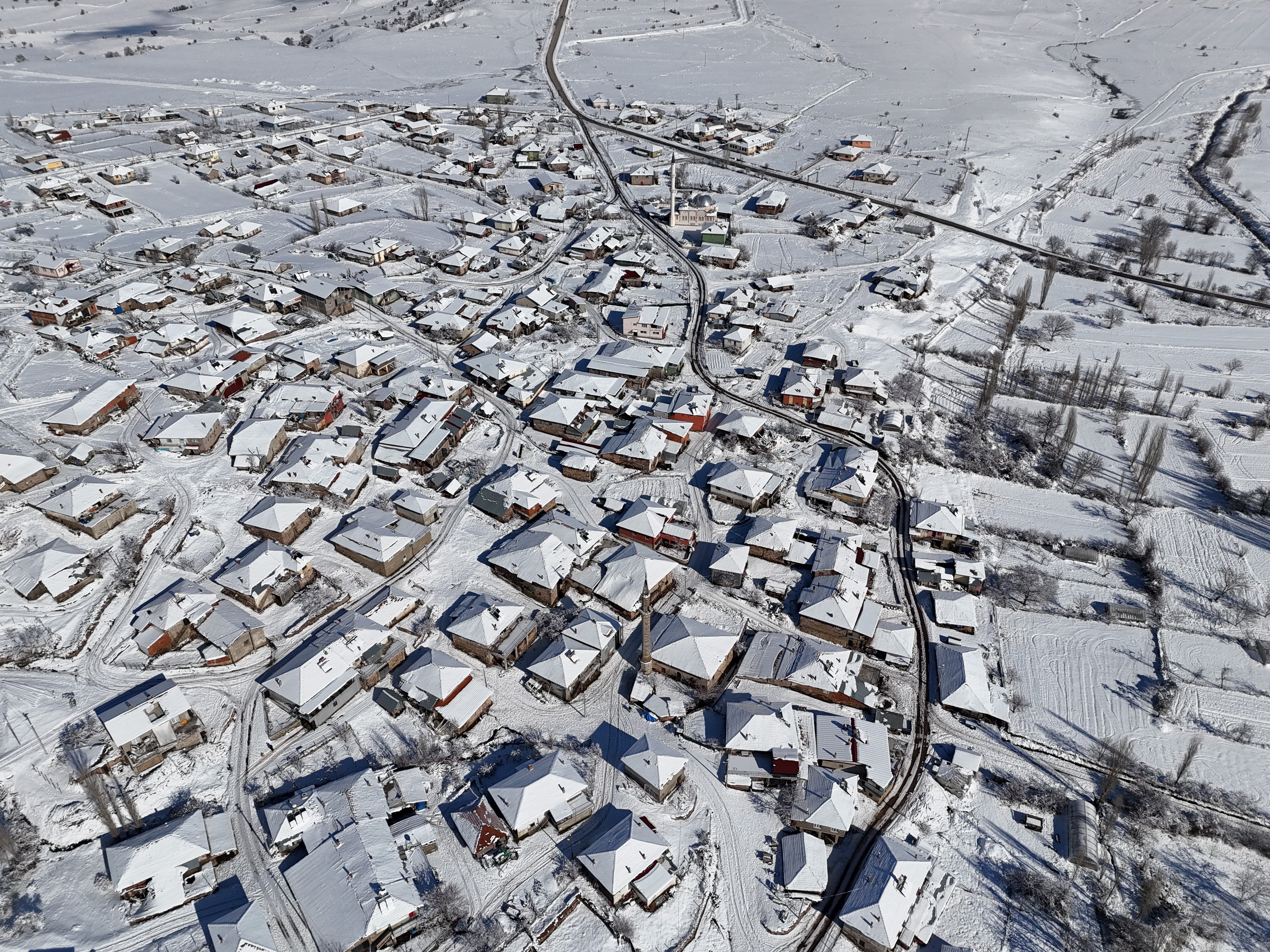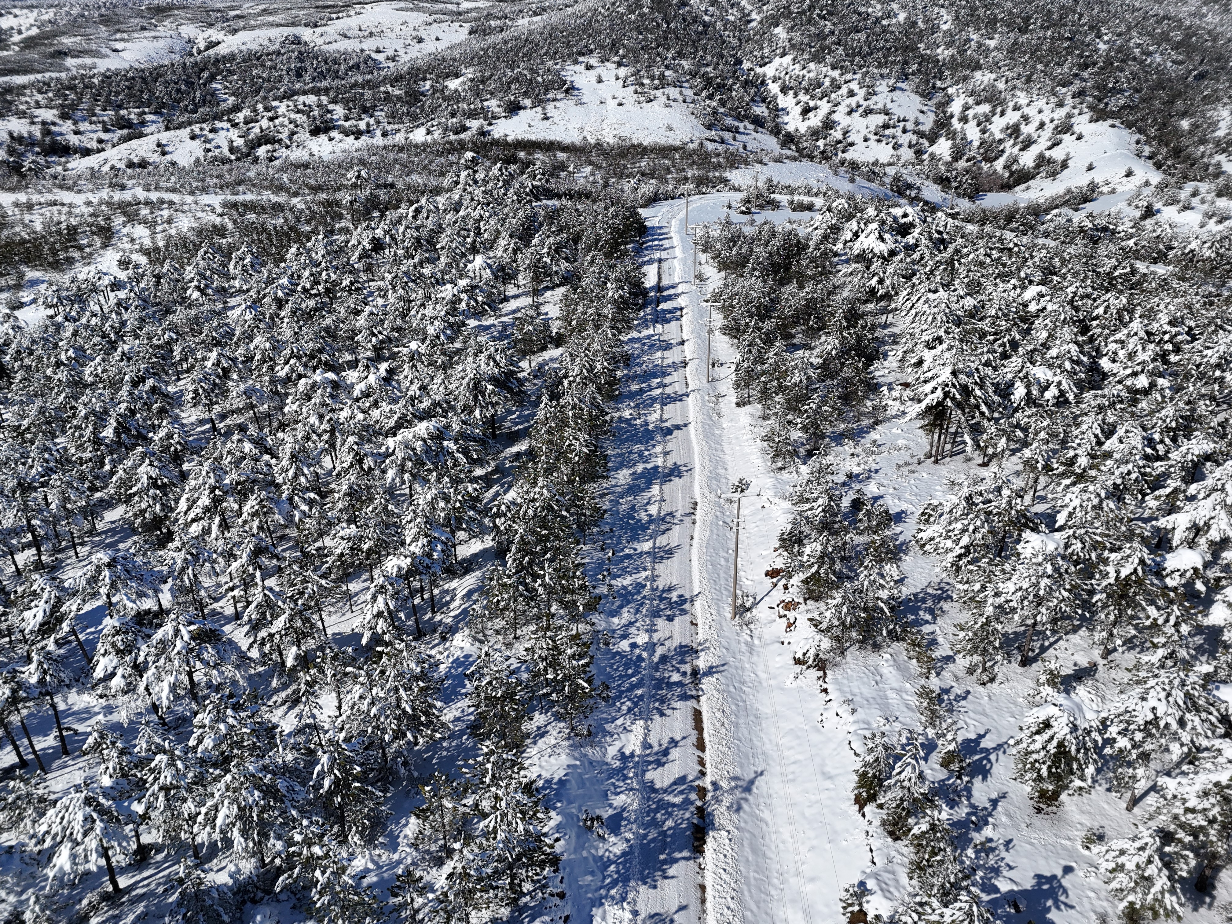 Kar yağışının ardından oluşan kartpostallık görüntüler dron ile havadan görüntülendi.