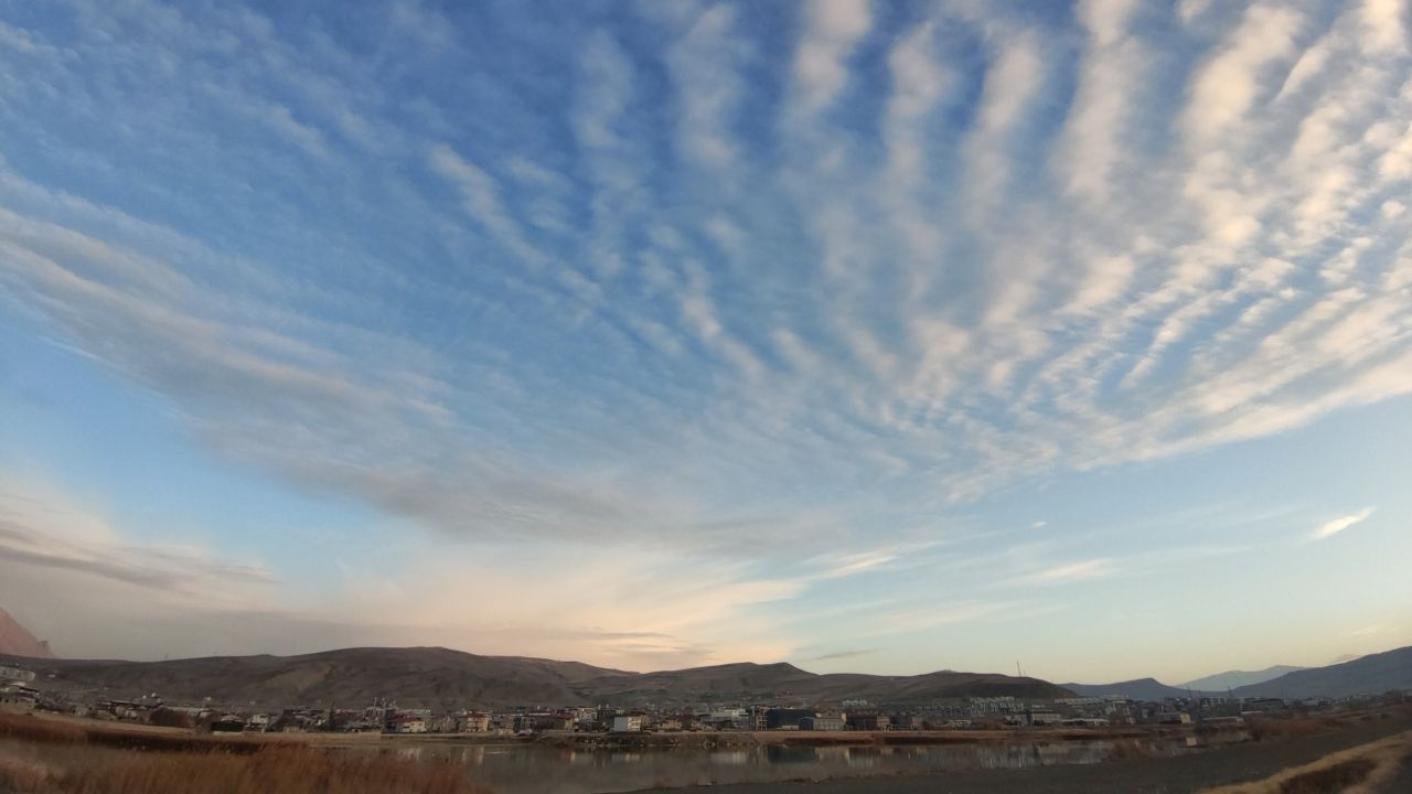 Gökyüzünün en nadir ve estetik oluşumları arasında yer alan ince, pamuksu görünümlü sirrokümülüs bulutları, gün batımının kızıllığıyla birleşerek etkileyici bir manzara oluşturdu.