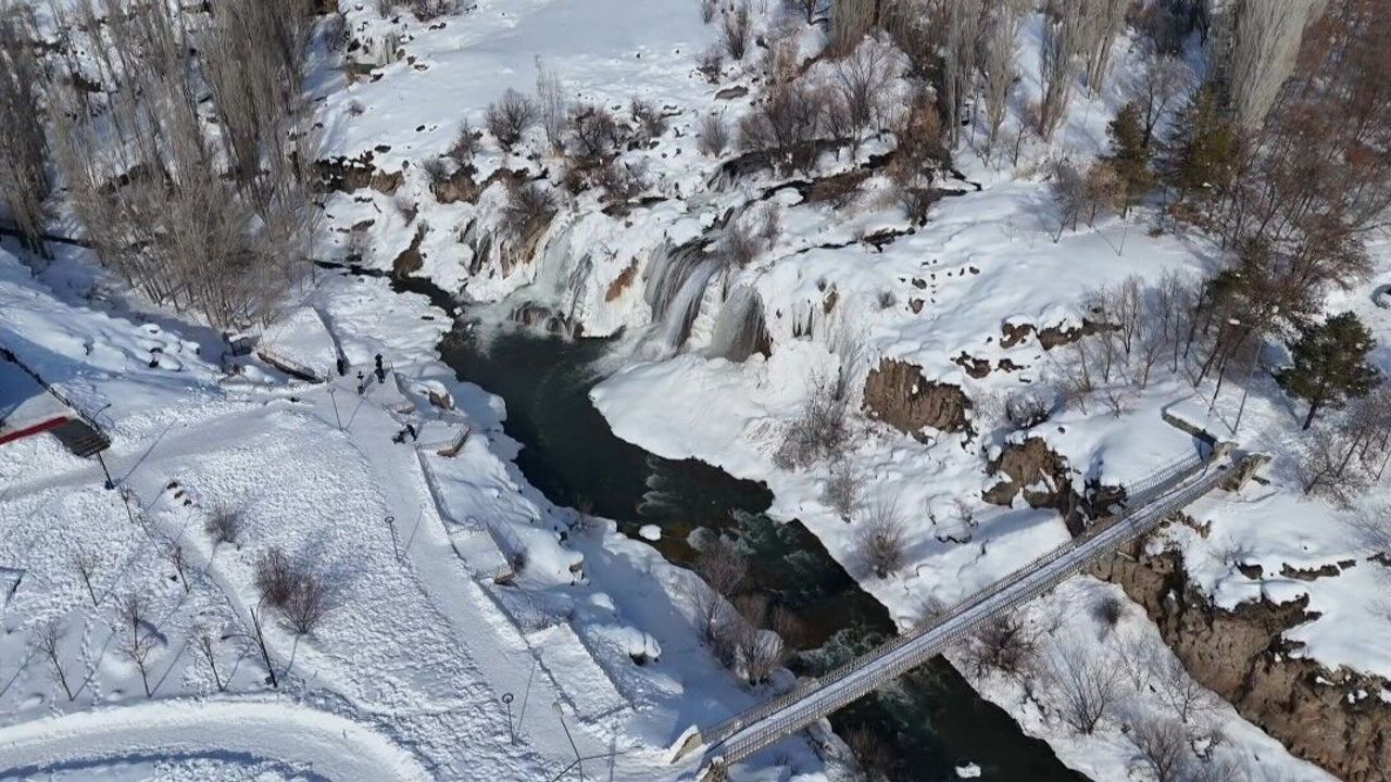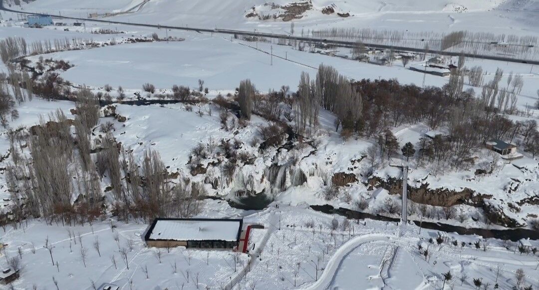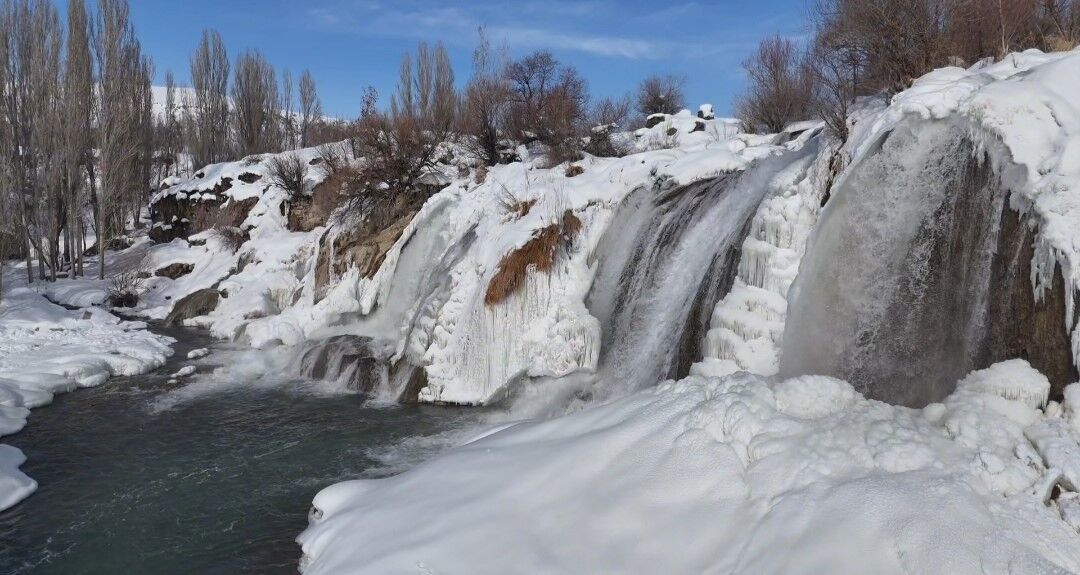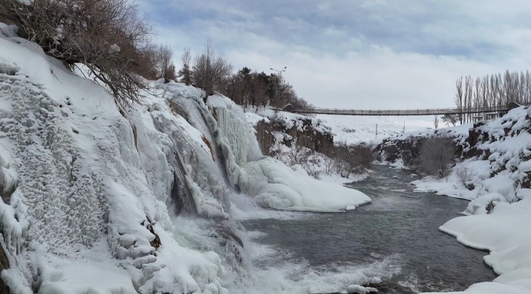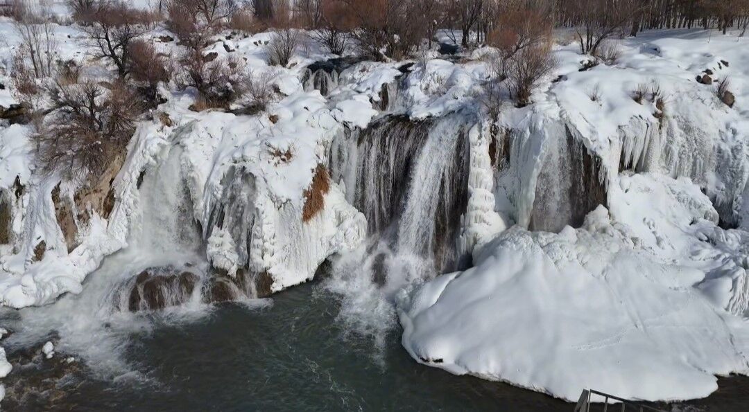 Her mevsim binlerce turisti ağırlayan Muradiye Şelalesi, kış mevsiminin gelişiyle birlikte büyüleyici bir görünüme büründü.