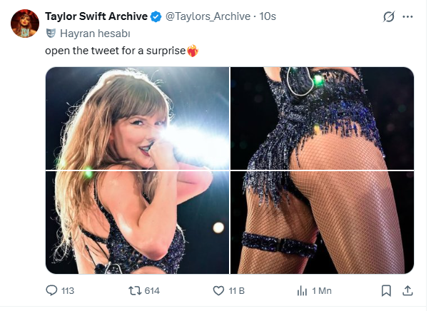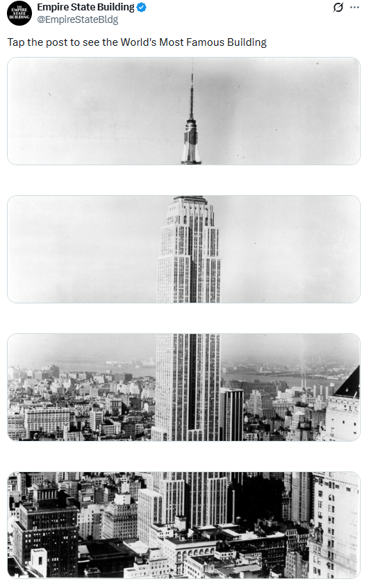 X'in arayüzü, bu görselleri akışta ızgara şeklinde gösterirken; kullanıcı görsele tıkladığında parçalar alt alta sıralanarak tek ve kesintisiz bir dikey fotoğraf oluşturuyor.