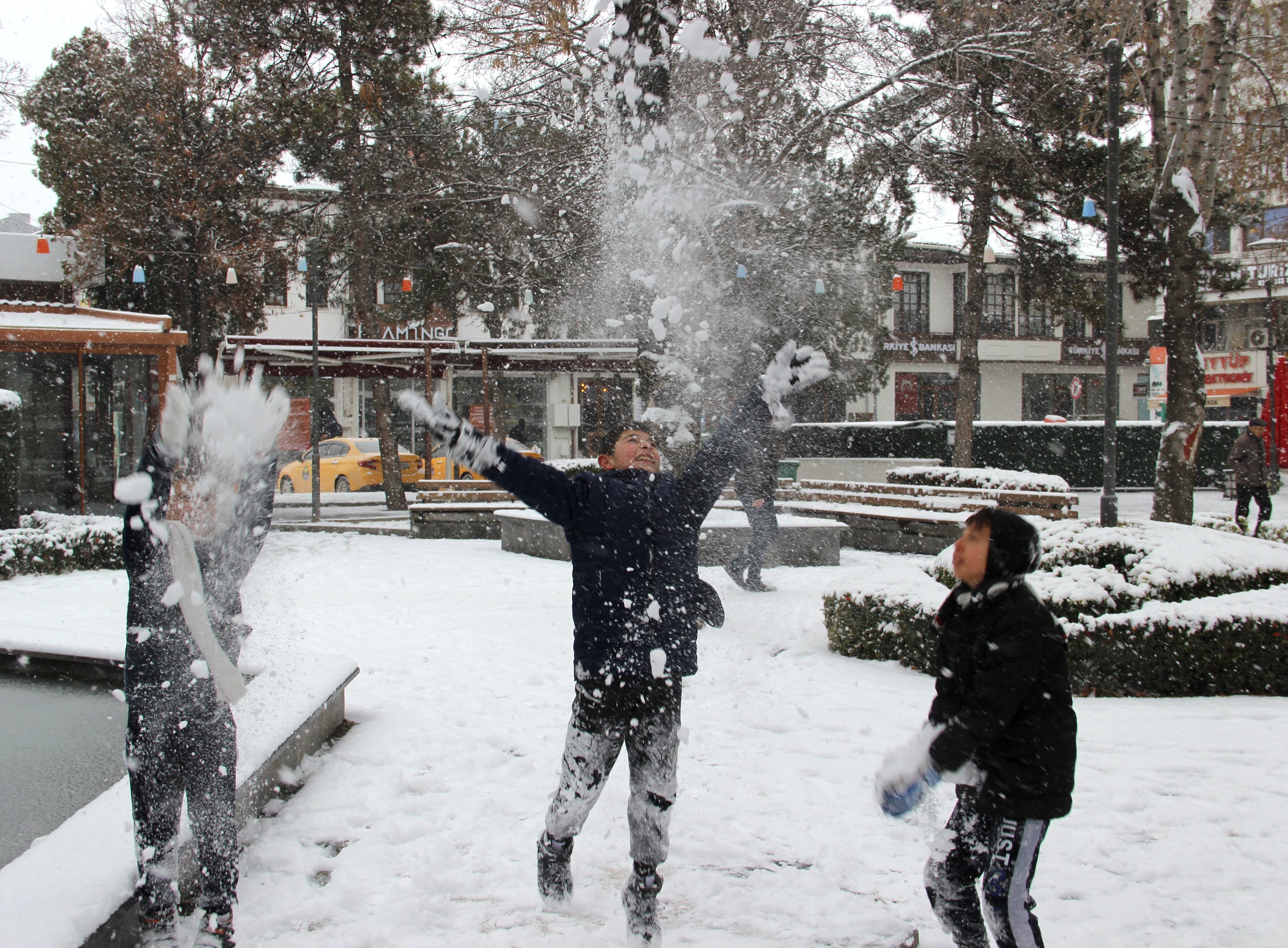 Dondurucu soğuğa aldırış etmeyen çocuklar, parklarda ve mahalle aralarında kartopu oynayarak eğlendi.