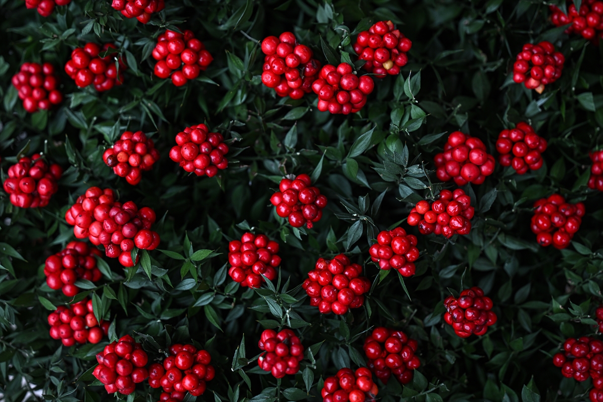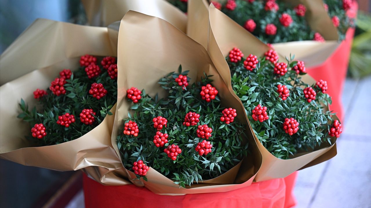 İki farklı bitkinin bir araya getirilmesiyle hazırlanan çiçek, özellikle yeşil yaprakları üzerinde yer alan kırmızı meyvesinin verdiği renkle hemen her yaştan insanın dikkatini çekiyor.