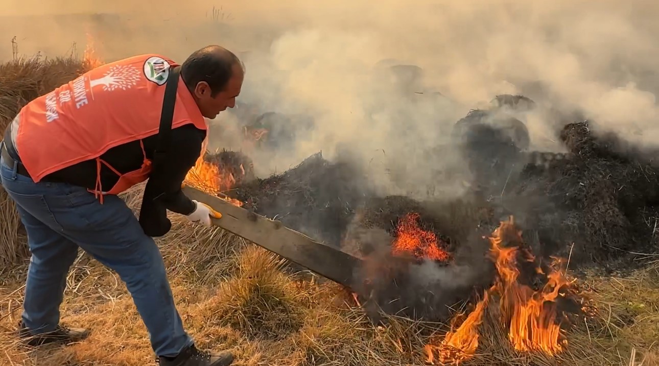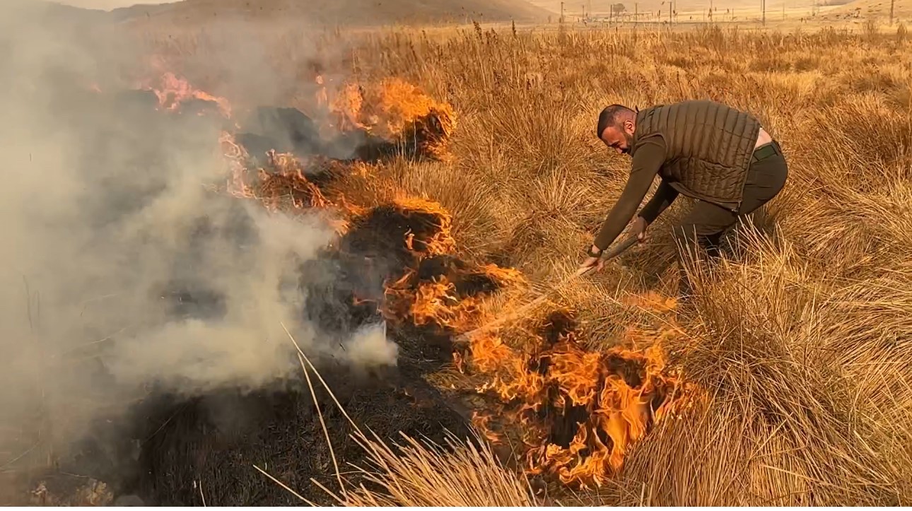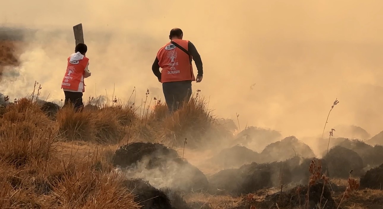 Henüz belirlenemeyen bir nedenle sazlığın orta kesiminde başlayan yangın, bölgenin zorlu arazi şartları nedeniyle söndürme çalışmalarını ciddi ölçüde güçleştiriyor. Bu zorlu şartlara rağmen TEMA Vakfı gönüllüleri, tahta parçalarıyla yangının yayıldığı noktalara vurarak ilkel yöntemlerle müdahalede bulundu.