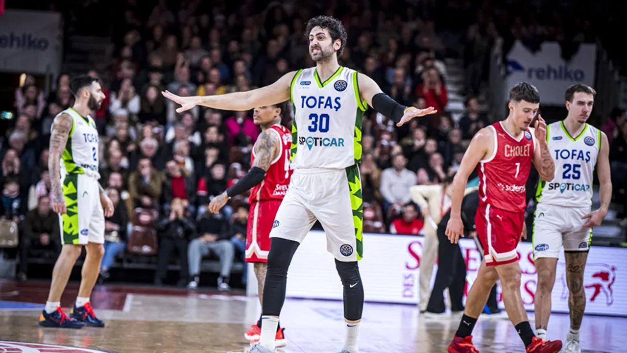 Basketbol Şampiyonlar Ligi’nde play-in eleme turu serisinin ikinci maçları heyecanla başlarken, temsilcimiz TOFAŞ, deplasmanda Cholet Basket’e konuk oldu. Karşılaşmanın ilk yarısında istediği oyunu sahaya yansıtmakta zorlanan Bursa ekibi, rakibinin yüksek tempo ve dış atışlardaki etkinliğine karşılık veremedi. İkinci yarıda toparlanma çabalarına rağmen aradaki farkı kapatamayan TOFAŞ, parkeden 105-86’lık mağlubiyetle ayrıldı. Bu sonuçla birlikte temsilcimiz için tur umutları zora girerken, Cholet Basket sahasında aldığı net galibiyetle seride önemli bir avantaj elde etti.