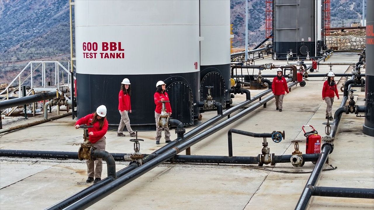 Ülkenin farklı illerinden petrol üretim faaliyetlerine katkıda bulunmak için bölgeye gelen kadınlar kasklarını takarak sahaya çıkıyor, laboratuvarlarda petrol numunelerini analiz ediyor, sondaj sahasında üretim süreçlerini takip ediyor.