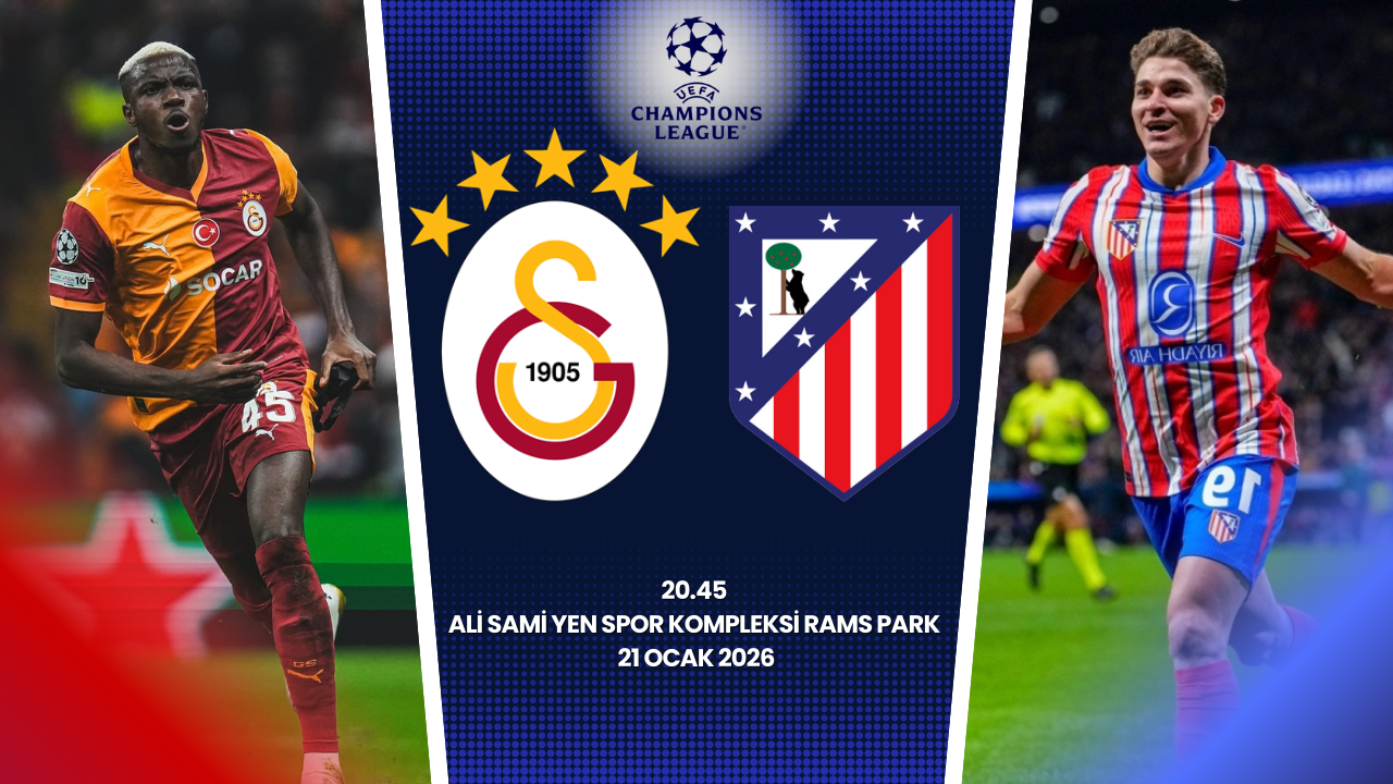 UEFA Şampiyonlar Ligi 2025-2026 sezonu 7. hafta karşılaşmasında Galatasaray ile Atletico Madrid kozlarını paylaşacak. Futbolseverlerin merakla beklediği bu dev mücadele 21 Ocak 2026 Çarşamba günü oynanacak. RAMS Park’ın ev sahipliği yapacağı karşılaşmanın başlama düdüğü ise saat 20.45'te çalacak.