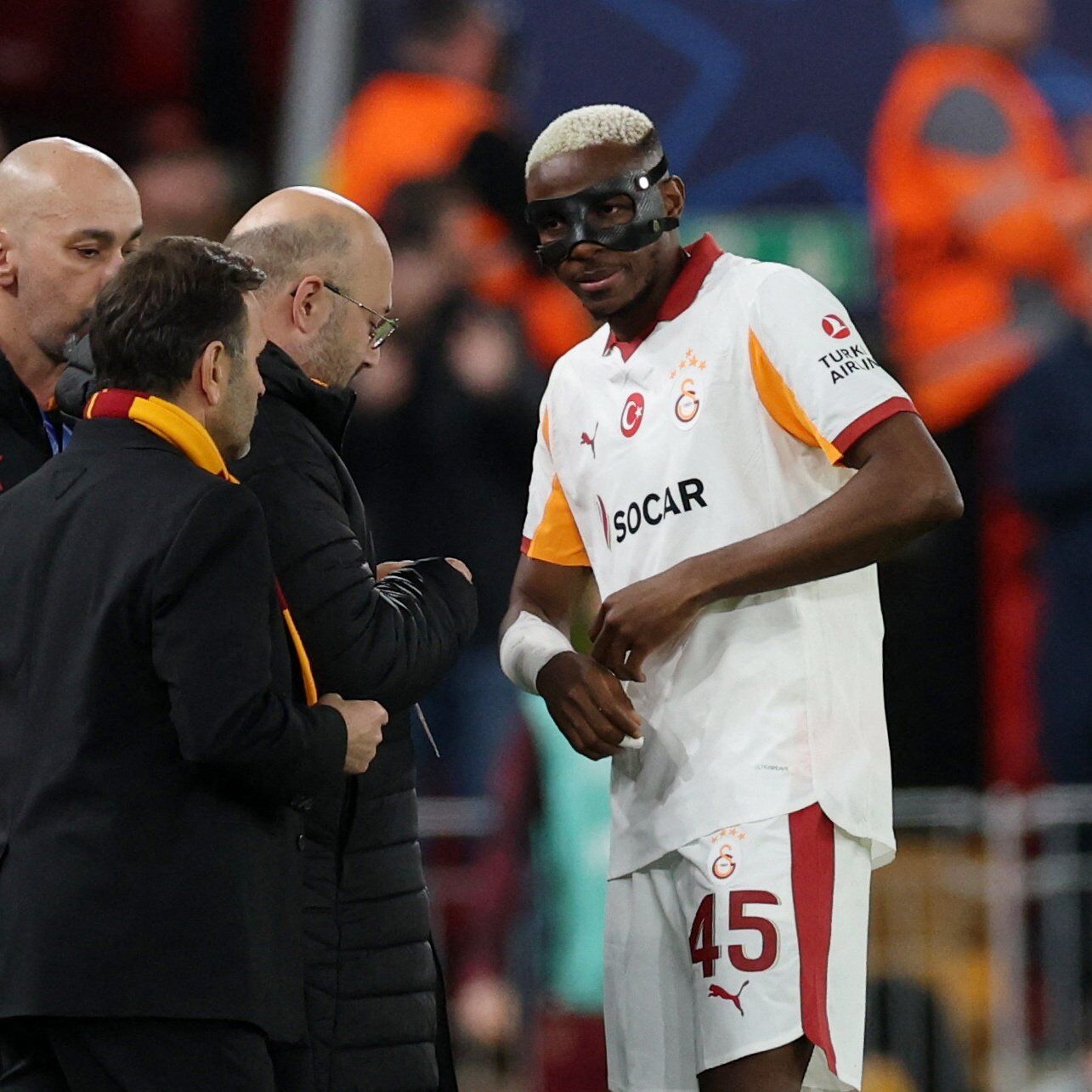 Galatasaray’dan yapılan açıklamada, karşılaşmanın ilk yarısında koluna darbe alan Victor Osimhen’in devre arasında yapılan kontrollerin ardından ikinci yarıda oynatılmadığı belirtildi.