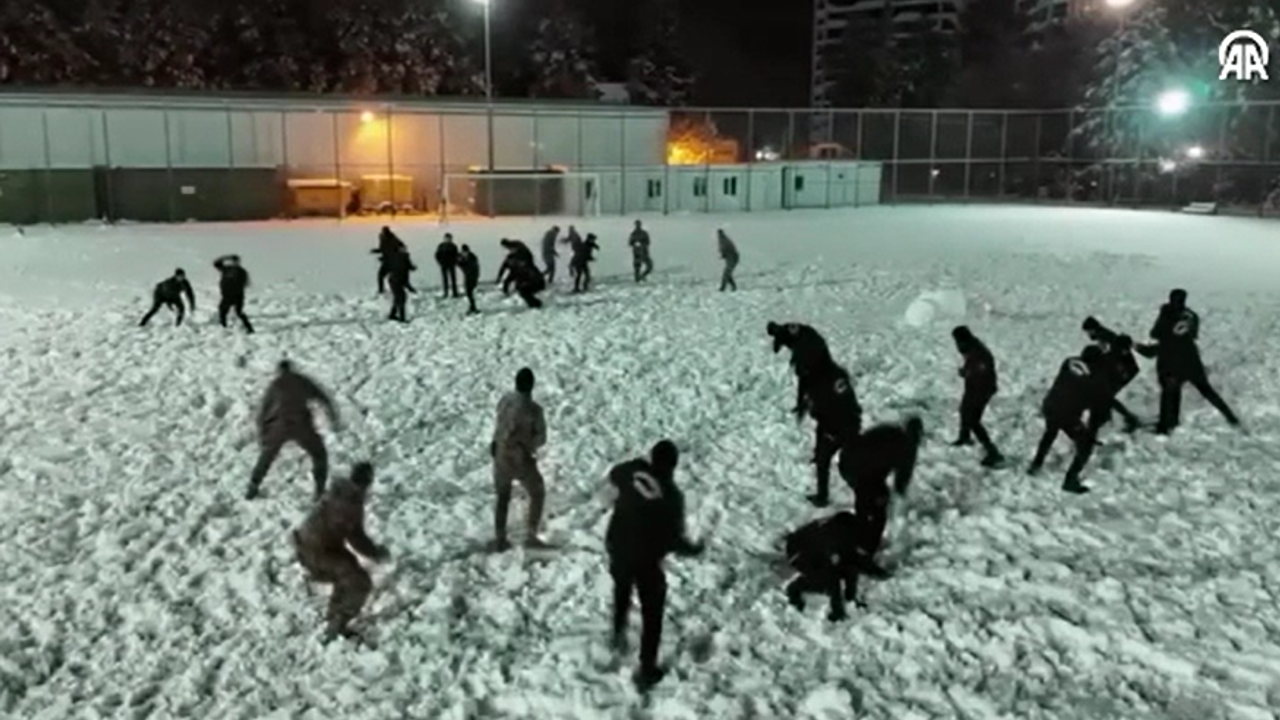 Gaziantep'te etkisini gösteren karın ardından polis ekipleri kar topu oynayarak eğlenceli vakit geçirdi.