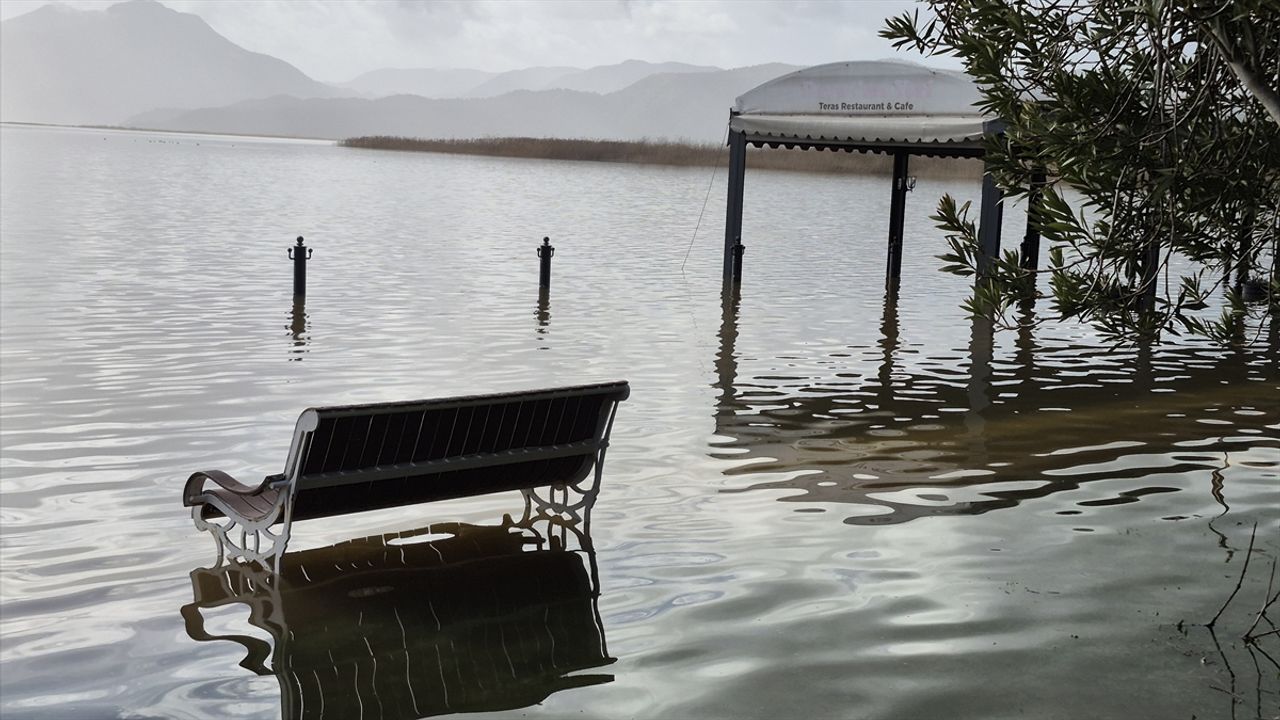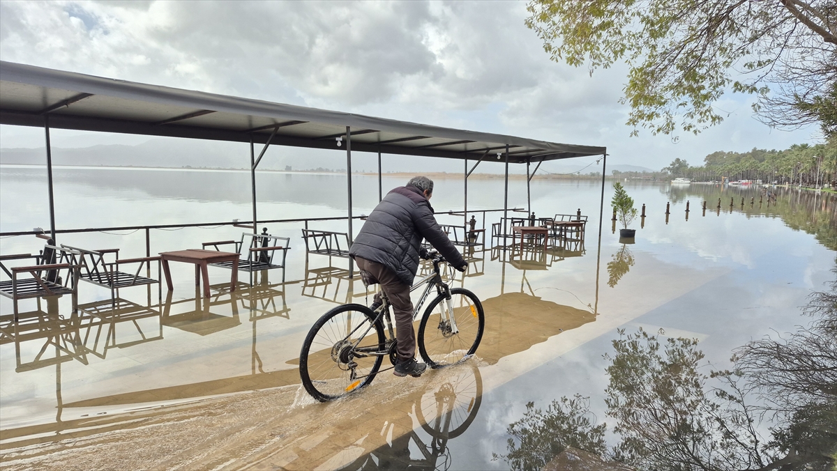 Muğla’nın Köyceğiz ilçesinde etkili olan sağanak yağış sonrasında Köyceğiz Gölü taştı, ilçe merkezinde hayat adeta durdu.