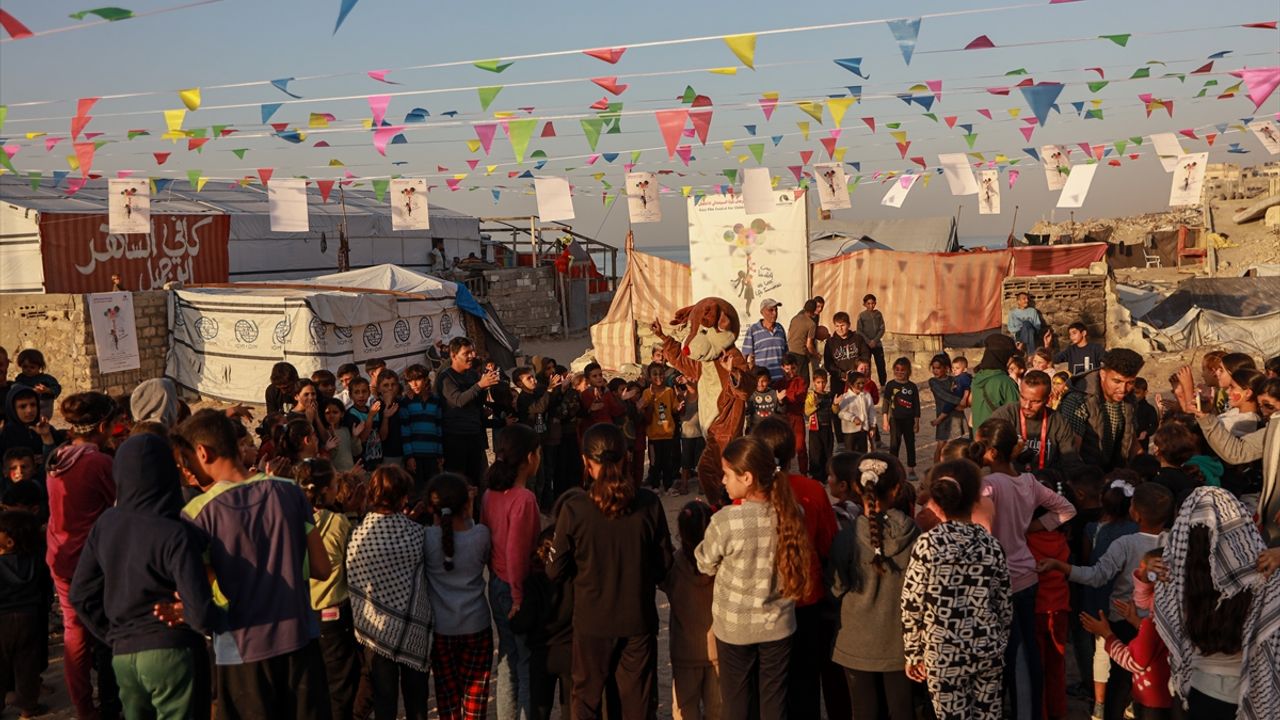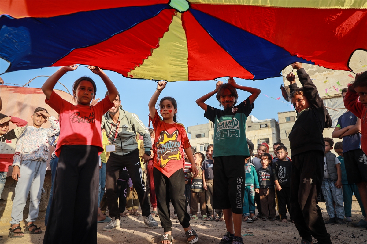 İsrail saldırıları sonucu harabeye dönmüş binaların arasında gerçekleşen etkinlik, silah ve bomba sesleri arasında büyüyen Gazzeli çocuklara kısa da olsa mutluluk ve neşe anları yaşattı.