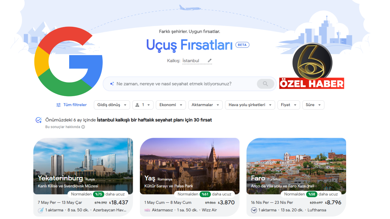 Google'ın son hamlesi ise sık sık seyahat edenleri hedef alıyor. Google, "Flight Deals" (Uçuş Fırsatları) adını verdiği yeni aracını tanıttı.