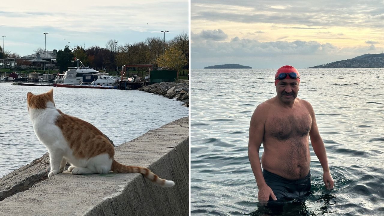 İstanbul'da termometreler on derecelere kadar düştü. Üşüten soğuk havaya rağmen, 62 yaşındaki Ömer Kötek ile 47 yaşındaki Muzaffer Sönmez Dragos sahile gelerek denize girdi.
