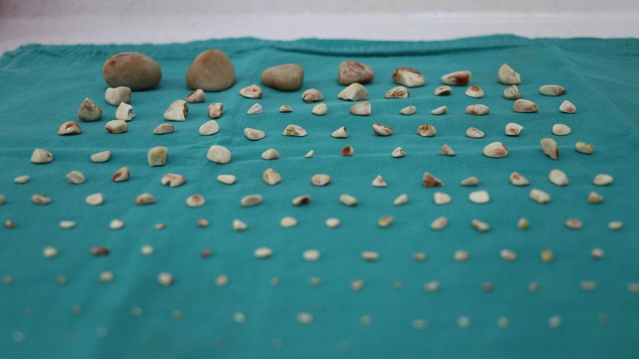 Başarılı bir ameliyat gerçekleştirdiklerini ifade eden Sivas Cumhuriyet Üniversitesi Veteriner Fakültesi Cerrahi Anabilim Dalı Uzmanı Doç. Dr. Tunahan Sancak, "Hastamızın adı Tarçın. Tarçın şehir merkezindeki bir klinikte bir yıldır idrar yolu ile alakalı tedaviler gördükten sonra sağlık sorunları yine aynı şekilde devam ettiğinden dolayı bize getirildi. Biz de yaptığımız muayeneler sonucu karın bölgesinde bir hassasiyet gördük. Bu duruma karşı tepki de veriyordu. Sonrasında röntgen çektiğimizde idrar kesesinde birçok taşın olduğunu fark ettik. İyice emin olmak için de ultrason muayenesi yaptık ve taşları teyit ettikten sonra ameliyat ile almaya karar verdik. Operasyondan önce kan aldık, hemogram ve biyokimya değerlerine baktığımızda değerlerinde bir yükselme vardı. Taşların fazla olmasından dolayı biz yine de bu ameliyatı gerçekleştirme kararı aldık. Ameliyata aldıktan sonra idrar kesesini açtık ve içerisinden irili ufaklı yaklaşık 140 tane taş çıkardık. Daha sonra keseyi düzgün bir şekilde temizledikten sonra kapattık" diye konuştu.