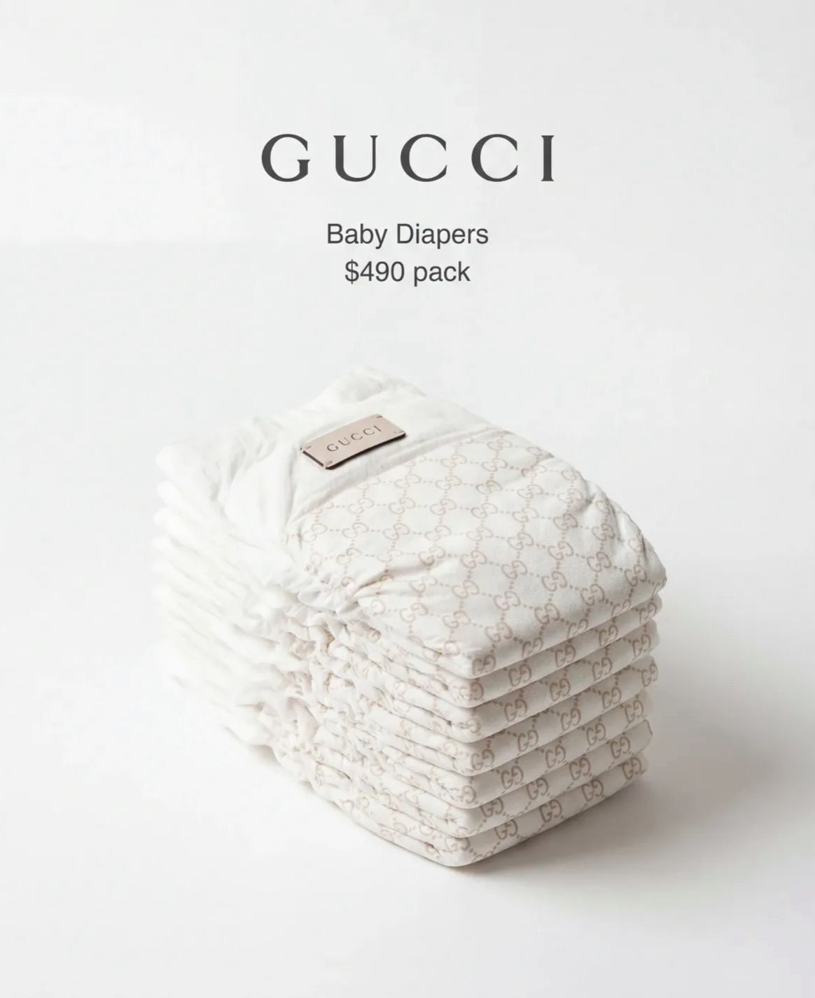 Gucci; bebek çantaları, giysileri ve aksesuarları gibi lüks bebek ürünleri satsa da, tek kullanımlık bebek bezi pazarında yer almamaktadır.