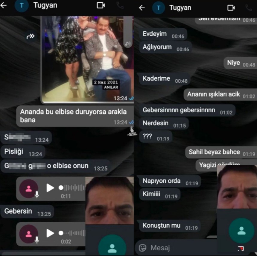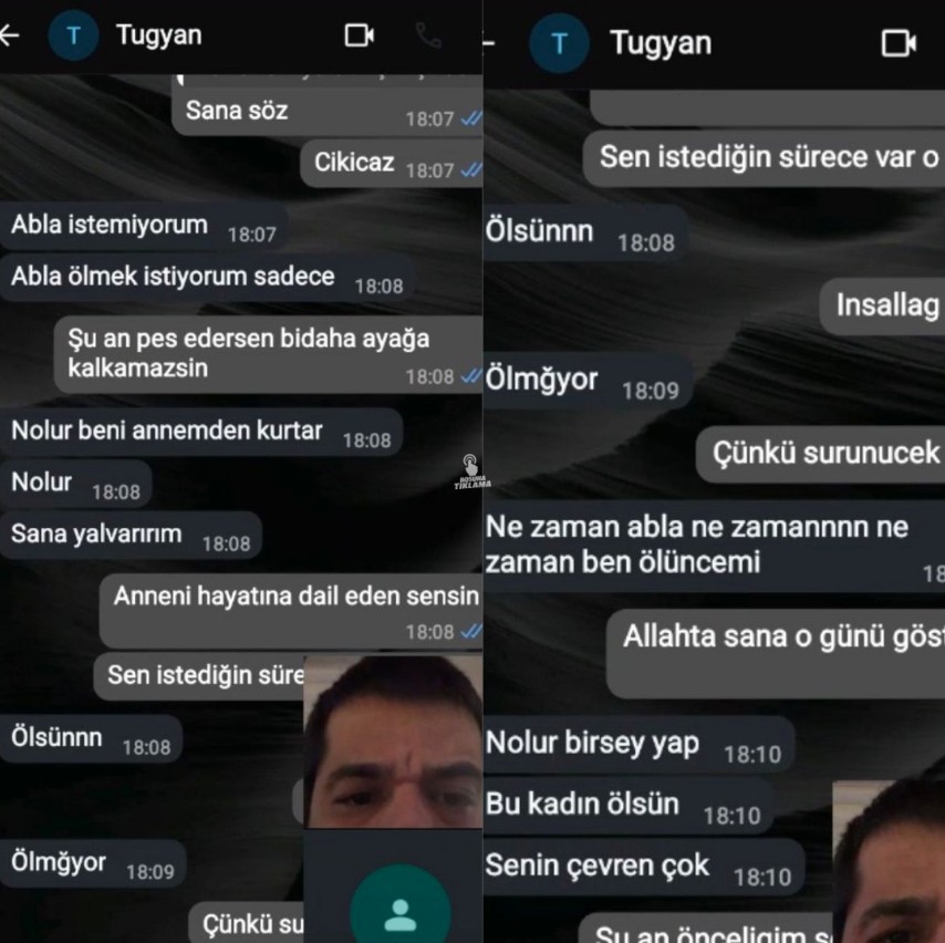 WhatsApp konuşmasında Güllü'nün kızı Tuğyan Ülkem Gülter'in annesi için "Ölsün" dediği karşısındaki kişinin ise "İnşallah" dediği görülüyor. Güllü'nün kızının "Ölmüyor, ne zaman abla ne zaman ne zaman ben öleceğim" demesi üzerine karşısındaki kişinin ise "Allah'ta sana o günü gösterecek" dediği, Tuğyan Ülkem Gülter'in ise "Nolur bir şey yap. Bu kadın ölsün. Senin çevren çok" dediği belirlendi.