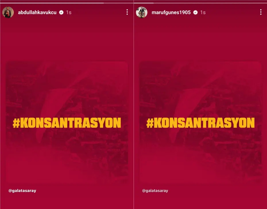 Öte yandan, Hacıosmanoğlu’nun açıklamalarının hemen ardından Galatasaray Kulübü sosyal medya hesabından “Konsantrasyon” ifadesinin yer aldığı bir paylaşım yaptı. Aynı paylaşım, Galatasaray Sportif A.Ş. Başkan Vekilleri Abdullah Kavukcu ve Maruf Güneş’in hesaplarında da yer aldı.