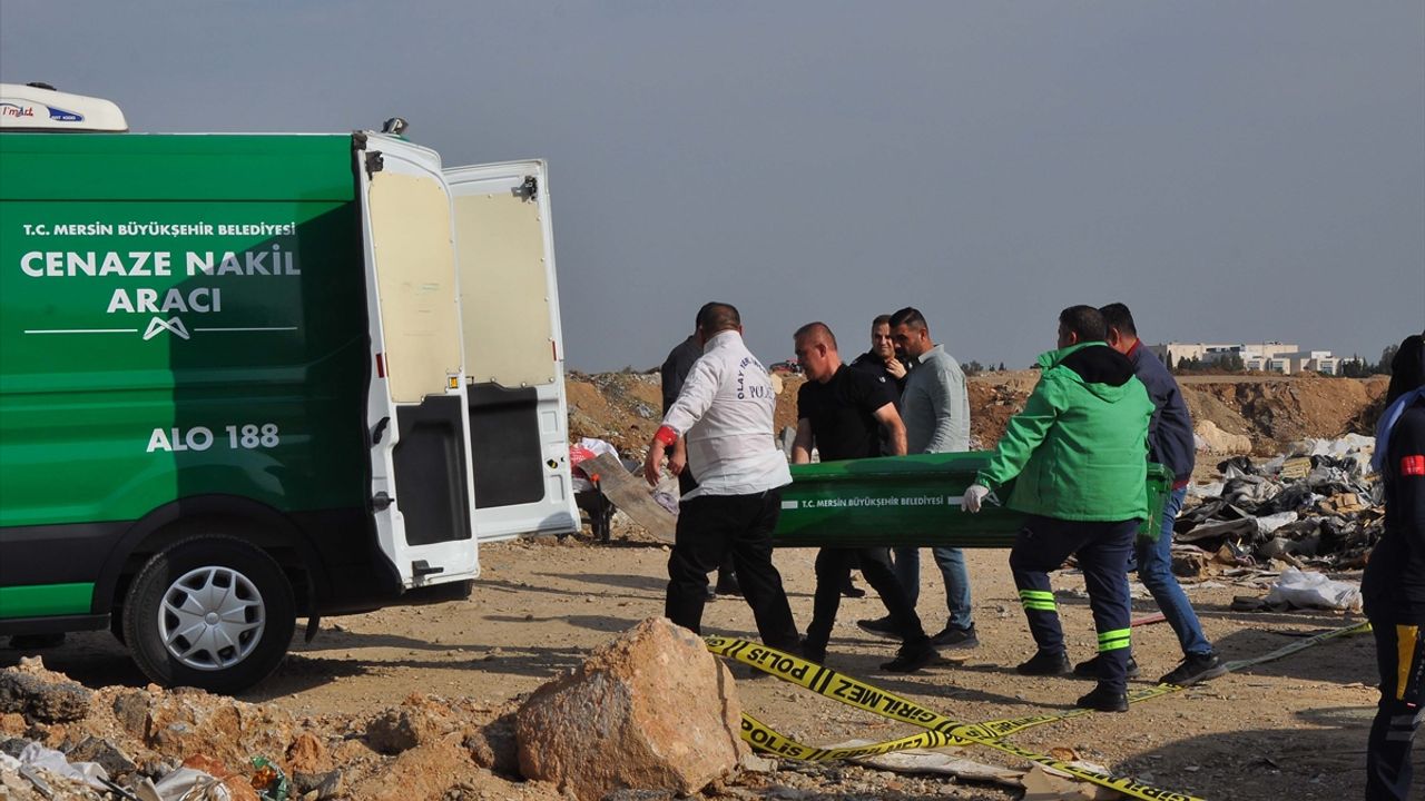 Mersin’in Tarsus ilçesinde hafriyat döküm alanında halıya sarılmış ve çekyata iple bağlanmış bir erkek cesedi bulundu.