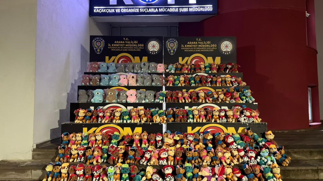Adana'da polis ekiplerinin yolcu otobüsüne yönelik yaptığı denetimde bir yolcuya ait çuvaldan çıkan bin 515 adet kaçak pelüş oyuncak ele geçirildi.