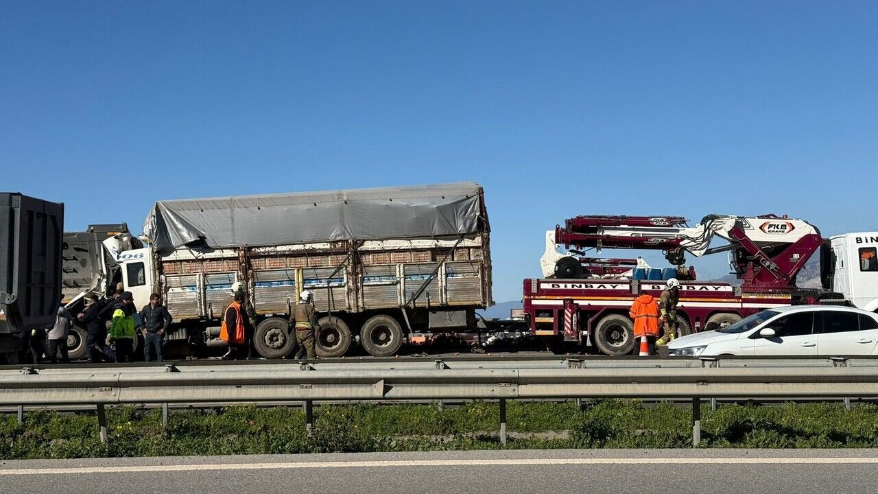 Seyir halindeki bir kamyon, aynı istikametteki hafriyat kamyonuna çarptı. Kazada araç içerisinde sıkışan sürücü mahsur kaldı.
