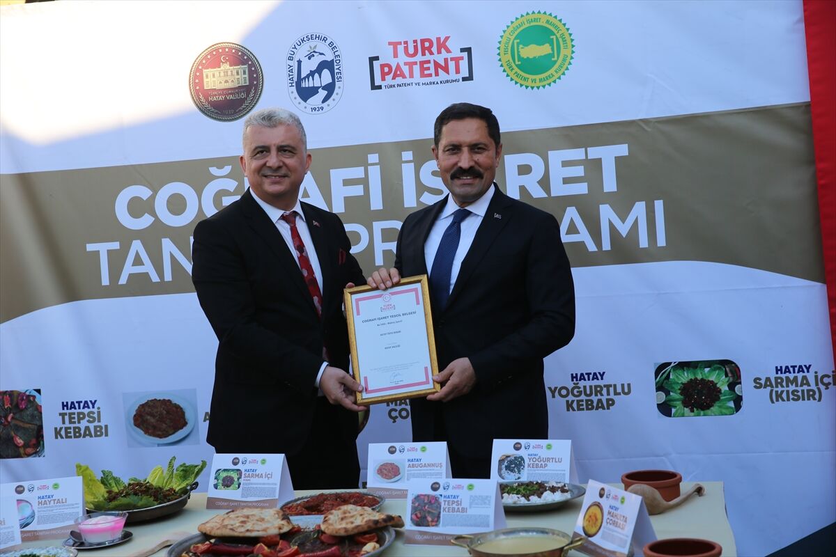 Hatay Valiliği’nin girişimiyle şehrin yedi yöresel ürünü coğrafi işaretle tescillendi. Tepsi kebabı, abugannuş, mahulta çorbası, yoğurtlu kebap, sarma içi-kısır, haydari ve haytalı Antakya Gastronomi Çarşısı'nda düzenlenen programla tanıtıldı.