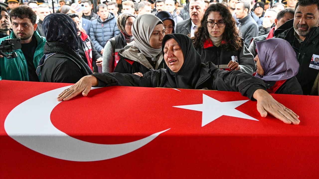 Cenaze töreninde gözyaşları sel oldu. Şehidin askeri montunu giyen eşi Ülkü Öztürk İlgen, eşinin fotoğrafına bakarak gözyaşı döktü.