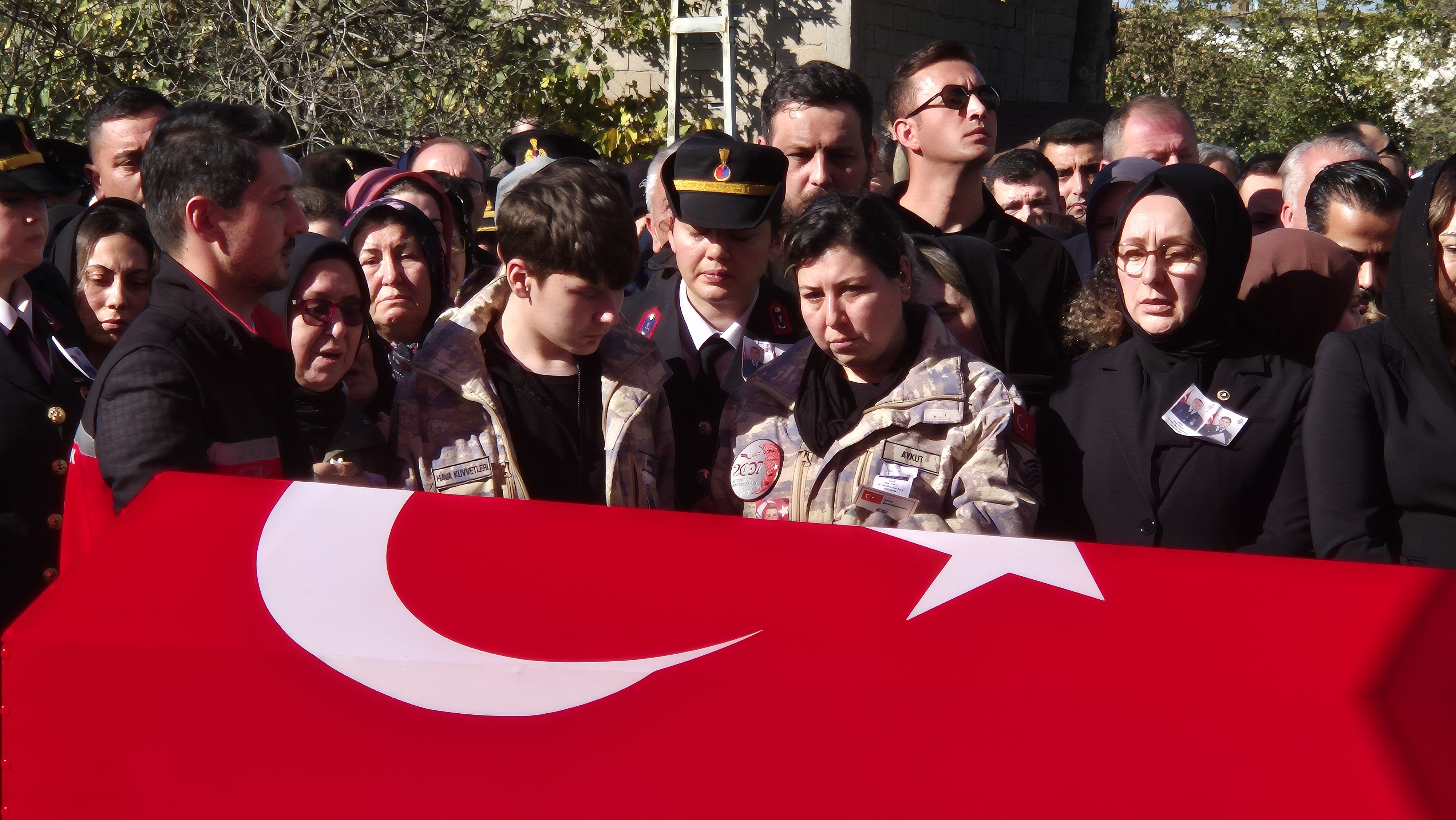 ŞEHİDİN EŞİ VE ÇOCUĞU ASKERİ KAMUFLAJ GİYDİ