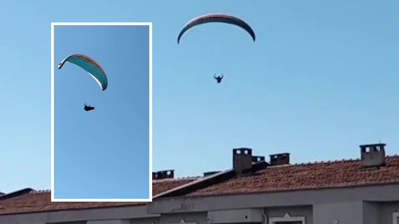 Arkadaşlarıyla bir kıraathanede oturan Okan Ece, evlerin çatılarına kadar alçalarak süzülen yamaç paraşütçüsünü fark etti. O anları cep telefonu kamerasıyla kaydetmeye başlayan Ece, gökyüzündeki pilota seslenerek "Gel çay iç, gel" diyerek davette bulundu. Havadan sahile ineceğini belirten pilot, inişini güvenli bir şekilde tamamladıktan kısa bir süre sonra kıraathaneye gelerek Ece ve arkadaşlarının masasına misafir oldu.