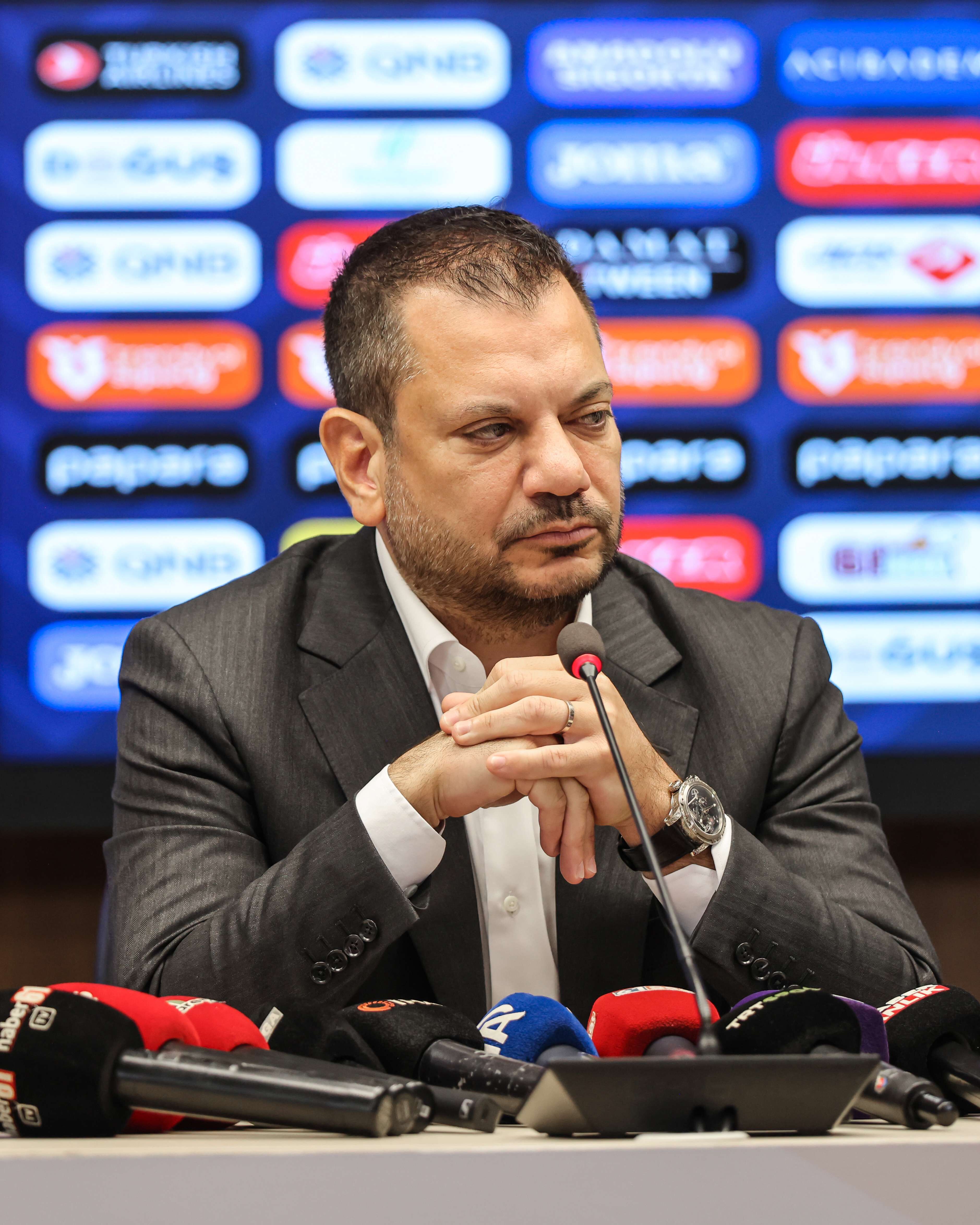 “Modern futbolu tek başına tutkuyla yönetemeyiz. Bunun için planlama ve veri temelli yaklaşım gerekir. Transfer politikamızda denge esas olmuştur. Genç oyuncu yatırımı ile tecrübeli isimleri doğru oranlarda bir araya getiren bir yapı kurduk. Altyapıya yaptığımız yatırımları artırarak kulübümüzün kendi üretim gücünü yükseltmeyi stratejik öncelik haline getirdik. Hedefimiz asla bir sezonluk çıkış olmadı, olmayacak da. Her sezon yarışan bir Trabzonspor inşa etmek en temel amacımızdır.” ifadelerini kullandı.