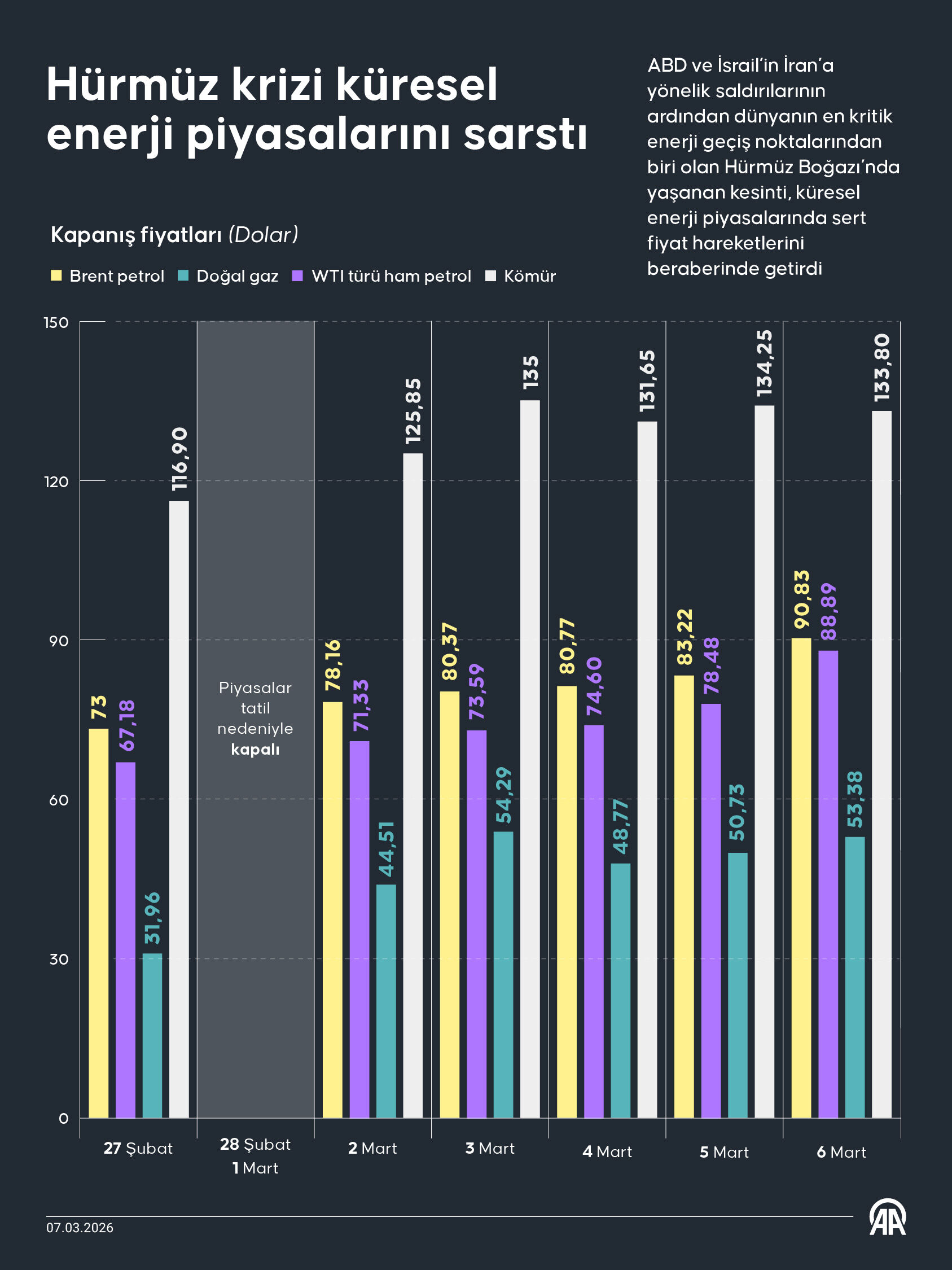 ABD ve İsrail’in İran’a yönelik saldırılarının ardından dünyanın en kritik enerji geçiş noktalarından biri olan Hürmüz Boğazı’nda yaşanan kesinti, küresel enerji piyasalarında sert fiyat hareketlerini beraberinde getirdi.