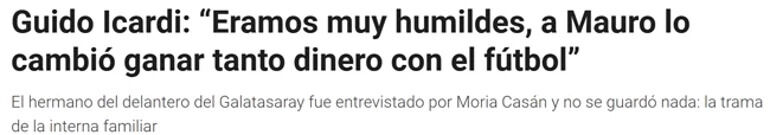 Arjantin’in önde gelen televizyon kanallarından Eltrece’ye konuk olan Guido Icardi, kardeşiyle uzun süredir görüşmediklerini açıkça dile getirdi: “Mauro ile yaklaşık 10 yıldır konuşmuyoruz. Bu sadece bana karşı değil, tüm aileye karşı bir mesafe.”