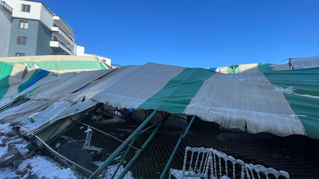Doğu Anadolu'yu etkisi altına alan ağır kış şartları Iğdır'da hayatı olumsuz etkiledi. Tuzluca ilçesinde yaklaşık bir yıldır düğün salonu konseptiyle işletilen kapalı halı saha, günlerdir devam eden kar yağışına teslim oldu.