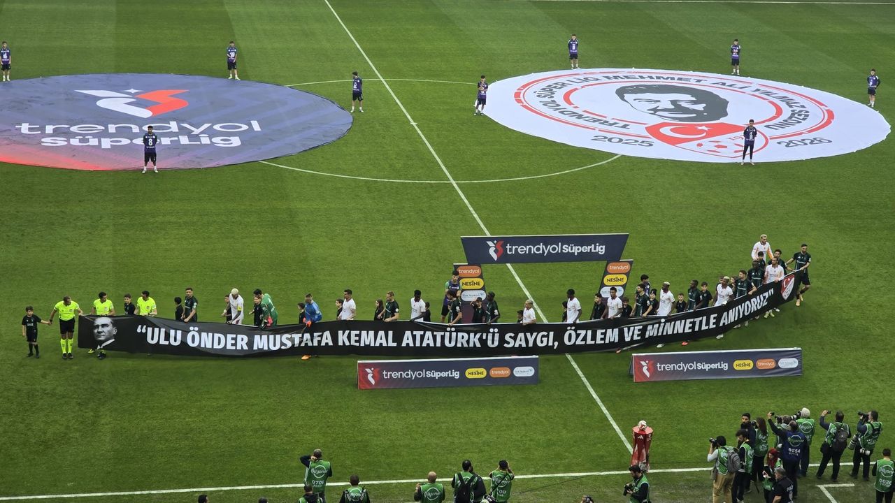 Kocaeli Stadyumu’nda maç öncesi düzenlenen seremoniye iki takımın futbolcuları, üzerinde “Ulu Önder Mustafa Kemal Atatürk’ü saygı, özlem ve minnetle anıyoruz” yazılı pankartla çıktı. Tribünleri dolduran binlerce taraftar, bu özel günde ayakta alkışlarla anmaya eşlik etti.