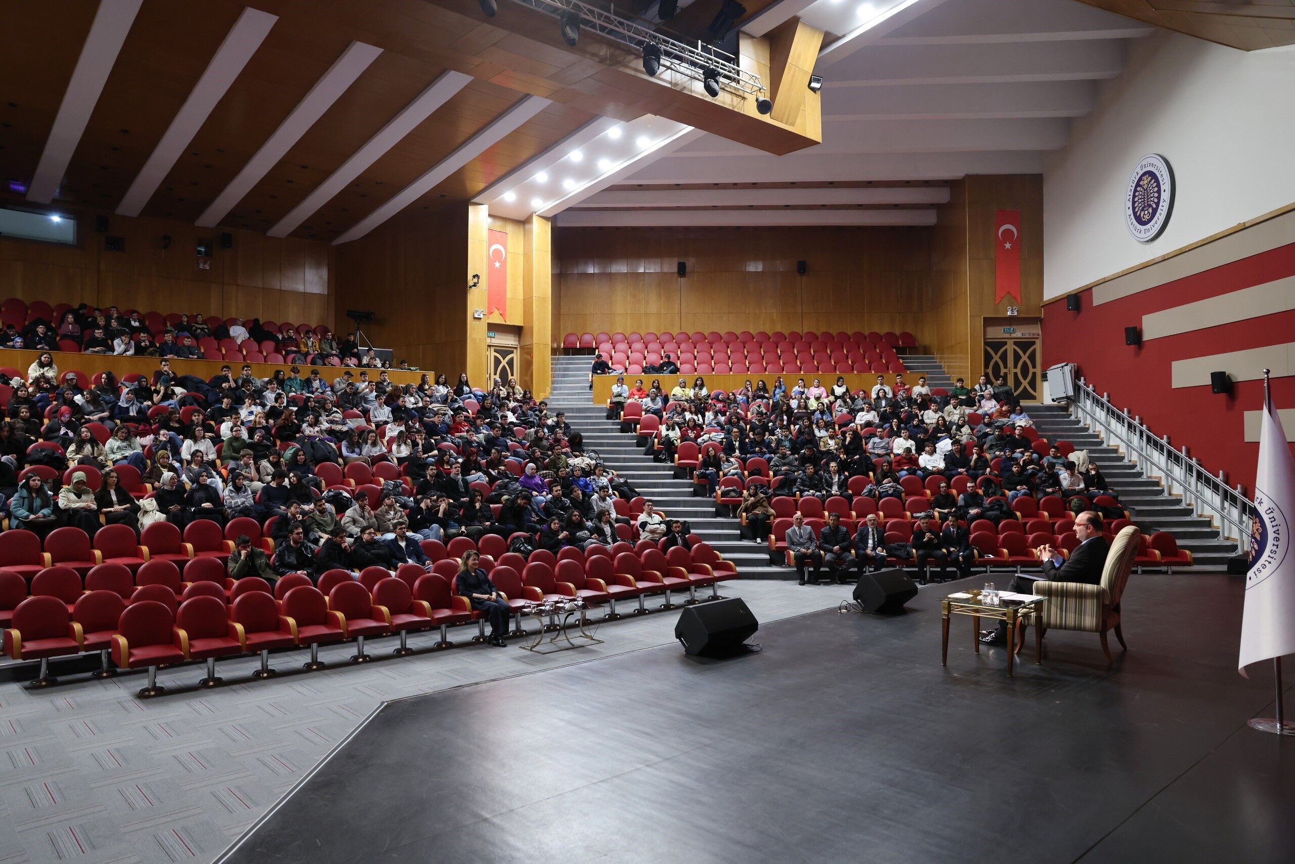 Programın soru-cevap bölümünde öğrencilerin merak ettikleri soruları içtenlikle yanıtlayan Rektör Hacımüftüoğlu, gençlerle birebir iletişim kurarak onların görüş ve beklentilerini dinledi. Karşılıklı etkileşimle zenginleşen buluşma, hatıra fotoğrafı çekimiyle sona erdi.