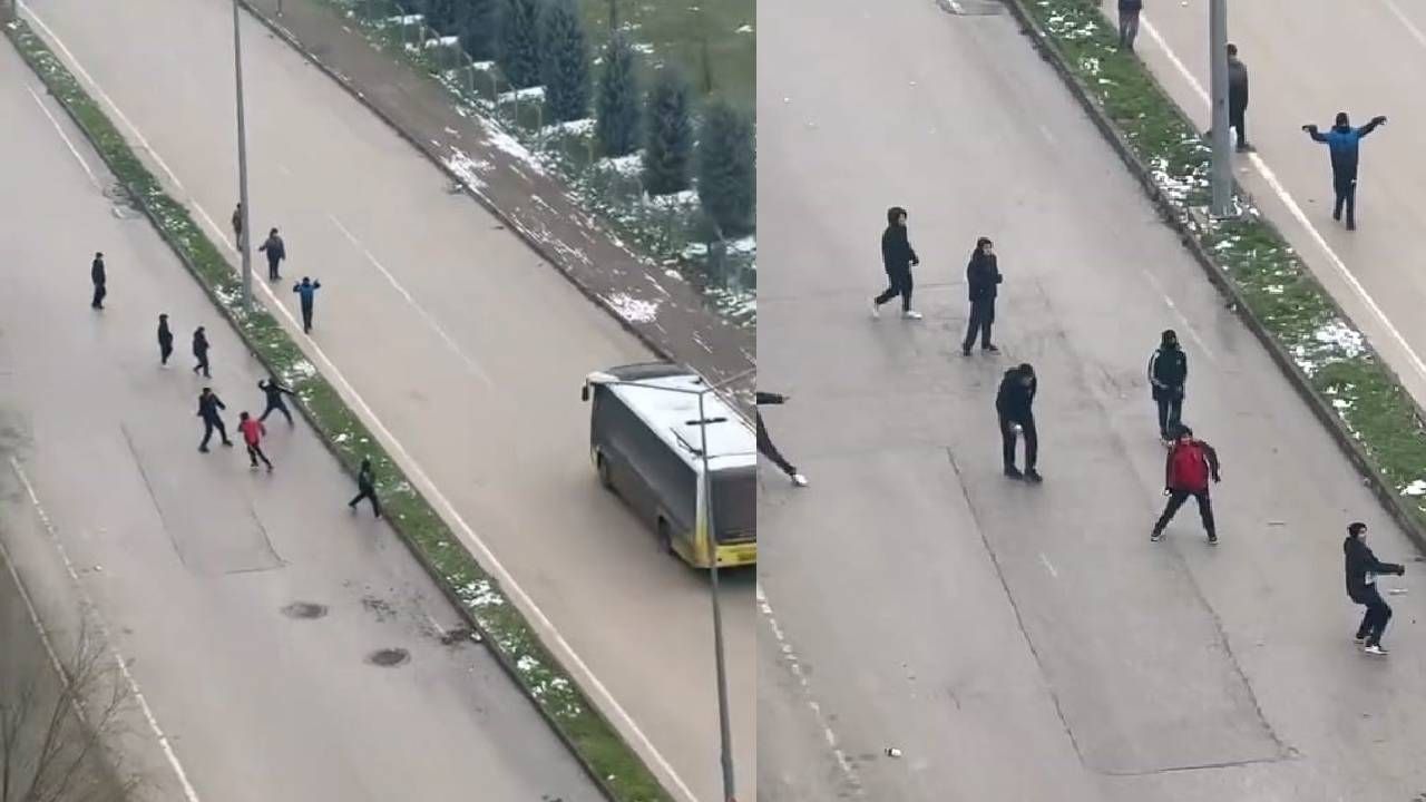 Şoförlerden biri aracını yol kenarına park ederek eline sopa aldı ve çocukların peşinden koştu. Yaşanan kovalamaca çevredeki vatandaşlar tarafından cep telefonu kamerasıyla görüntülendi. Görüntülerde çocukların kaçtığı, şoförün ise bir süre kovaladıktan sonra geri döndüğü görülüyor.