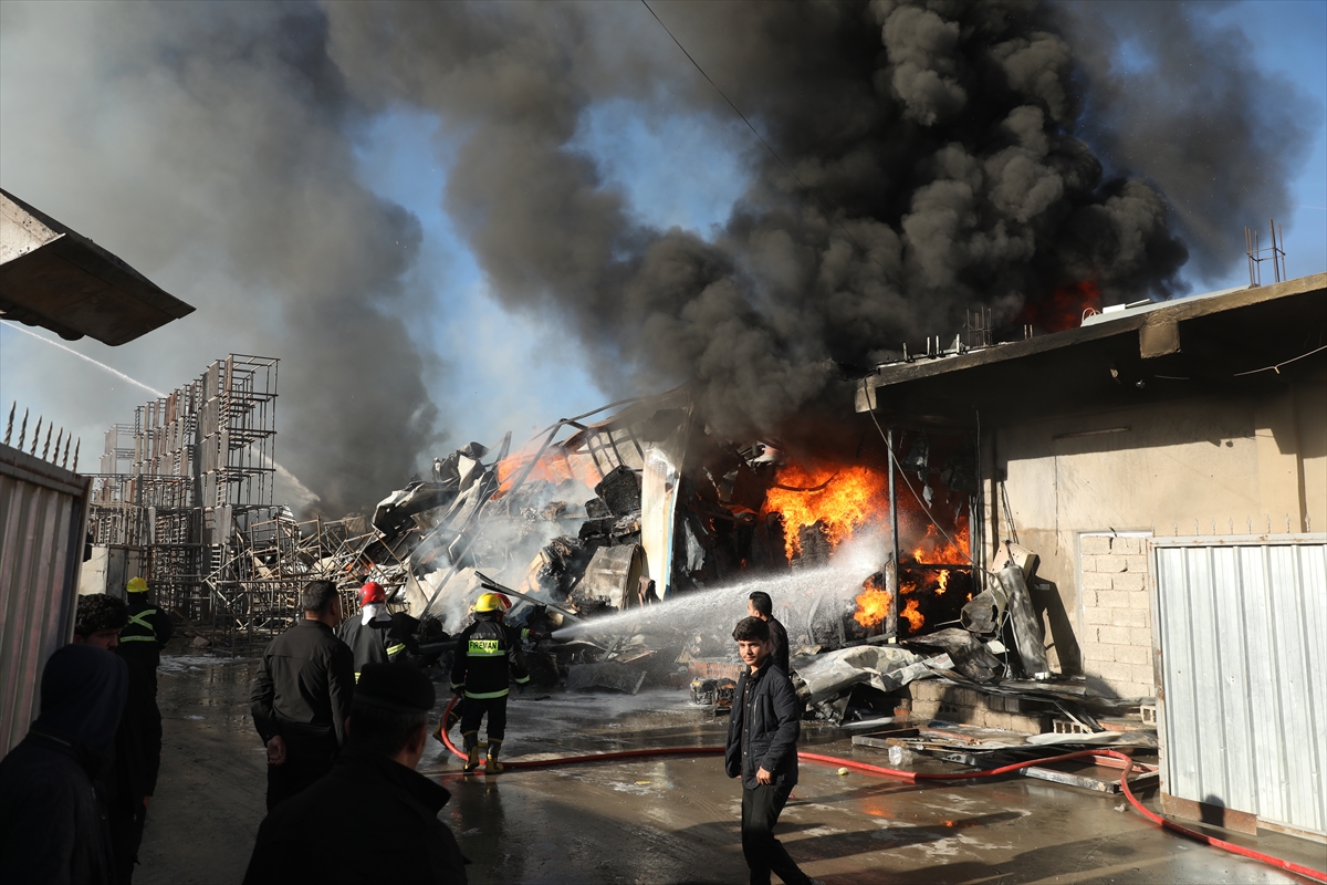 Irak’ın Erbil kentinde yerleşim bölgesi içinde bulunan bir fabrikada çıkan büyük çaplı yangın paniğe neden oldu.
