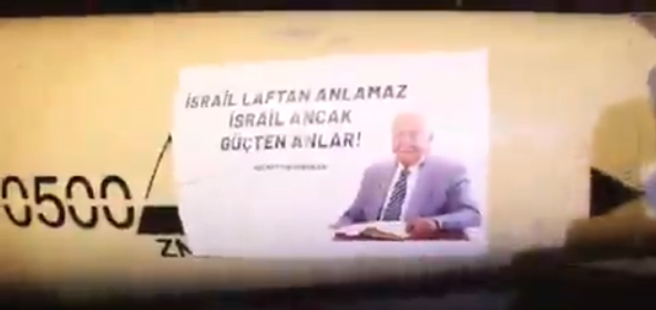 Füze üzerinde Erbakan'a ait "İsrail laftan anlamaz. İsrail ancak güçten anlar." ifadesinin yer aldığı görüldü. Söz konusu görüntü kısa sürede sosyal medyada geniş yankı uyandırdı.