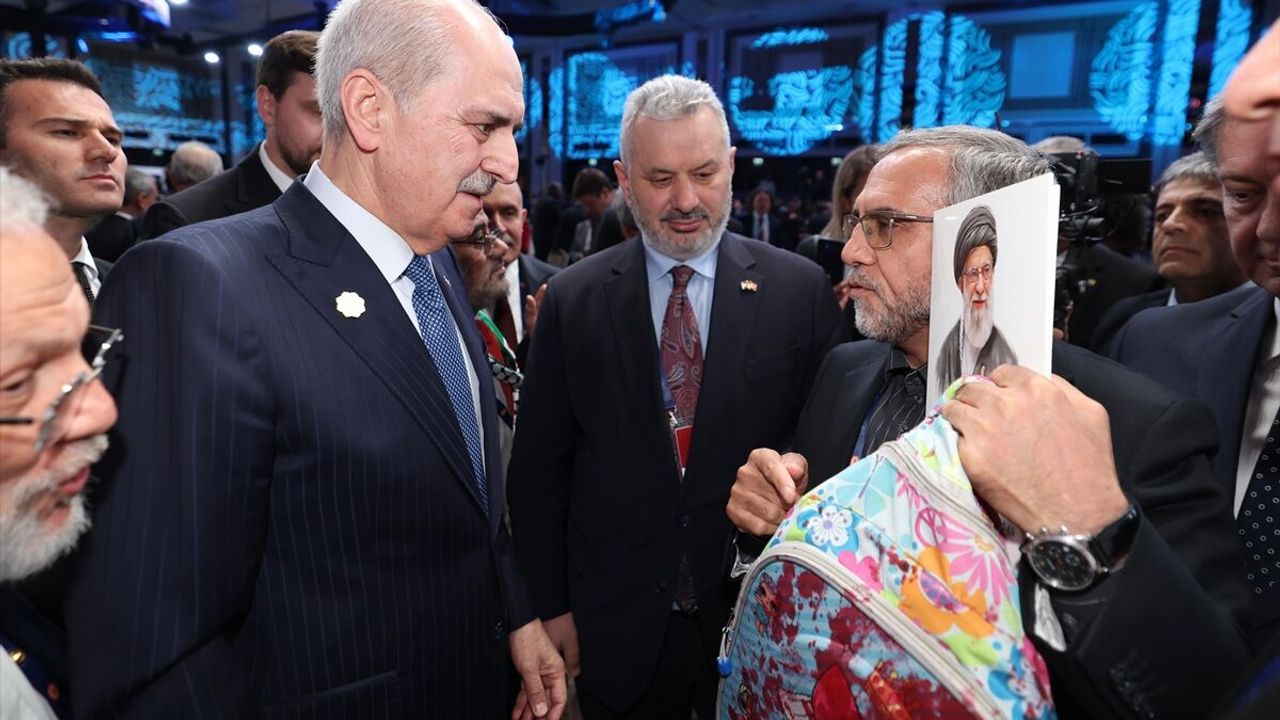 Açılış seremonisi için salonda bulunan TBMM Başkanı Numan Kurtulmuş'un yanına yaklaşan İranlı bir parlamenter, yanında getirdiği ve üzerinde belirgin kan izleri olan bir ilkokul çantasını Kurtulmuş'a gösterdi. Ülkesinde yaşanan trajedinin en somut ve acı kanıtı olarak İstanbul'a getirilen çantayı gören Kurtulmuş, duyduğu derin üzüntüyü gizleyemedi. Kanlı çanta karşısında duygusal anlar yaşayan TBMM Başkanı, işlenen insanlık suçlarına tepki göstererek, bu tür vahşetlerin en ağır bedelini ne yazık ki her zaman kadınların ve savunmasız çocukların ödediğinin altını çizdi.