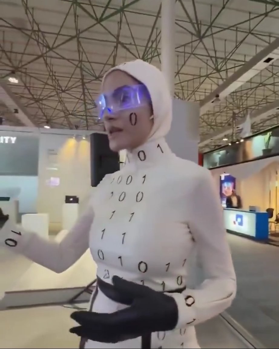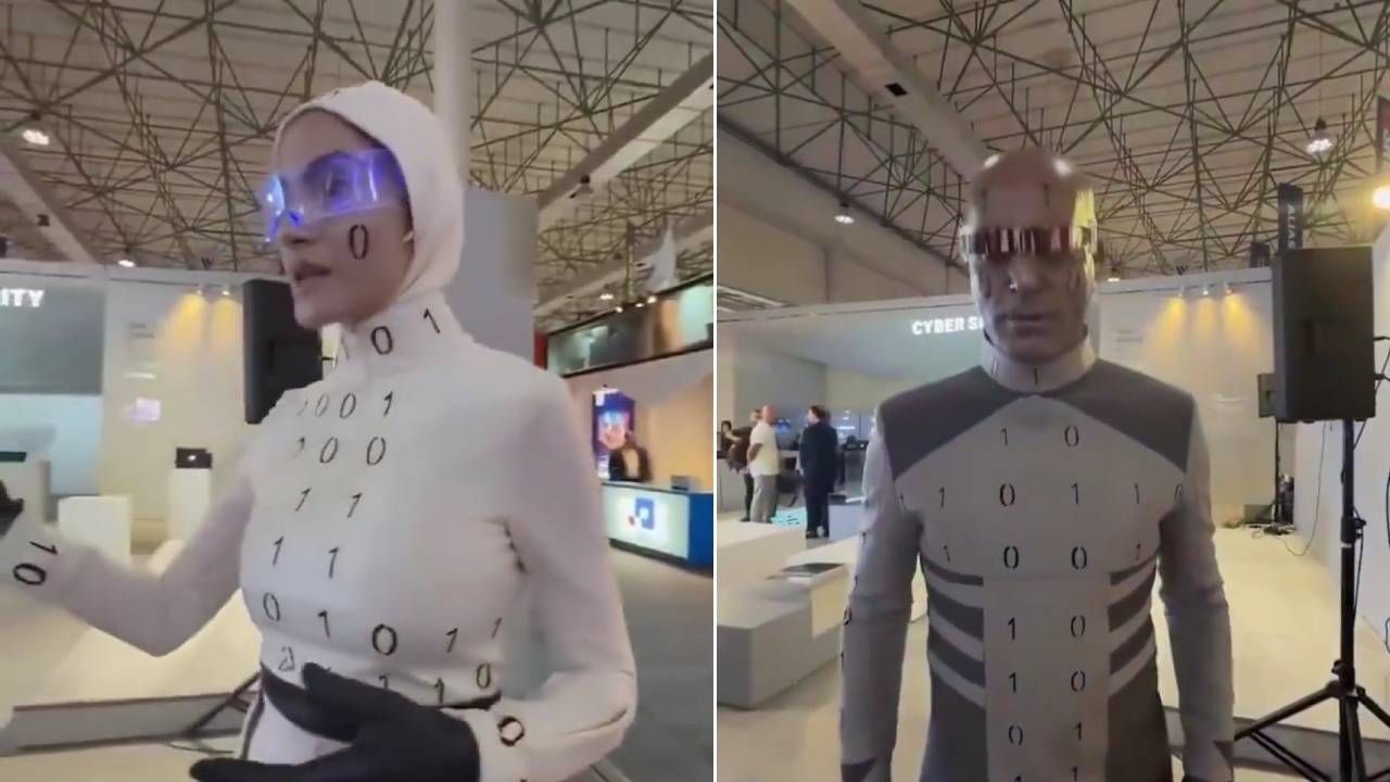 Etkinlikten paylaşılan videolarda bir erkek ve bir kadın performansçının, yapay robot hareketlerini taklit ederek sahneye çıktığı, kendilerini ise “ortak bir veri kodu içinde birlikte çalışan bir veri koleksiyonu” olarak tanıttıkları görülüyor. Sahnedeki ritmik ve mekanik hareketler ilk bakışta izleyicileri yanıltmayı amaçlasa da, detaylar kısa sürede robotların gerçek olmadığı yönündeki şüpheleri artırdı.
