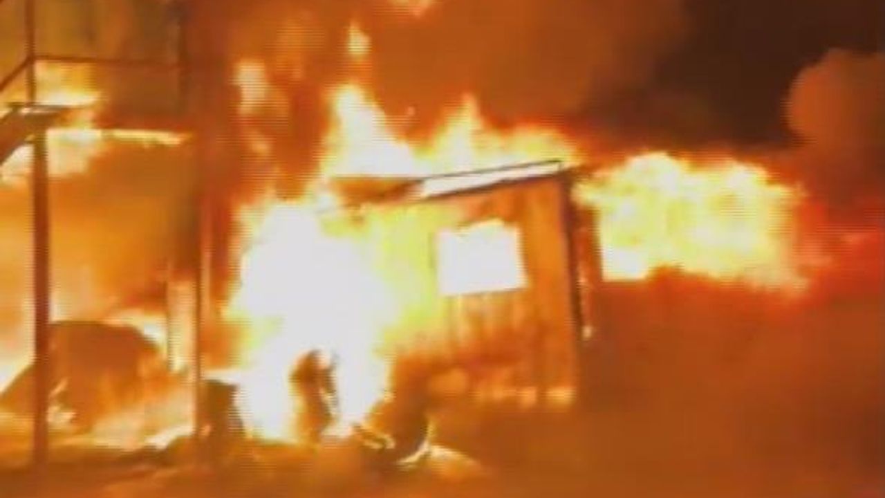 Hatay'da şantiyede çalışan işçilerin kaldığı konteyner yatakhanede çıkan yangın korku dolu anların yaşanmasına neden oldu.