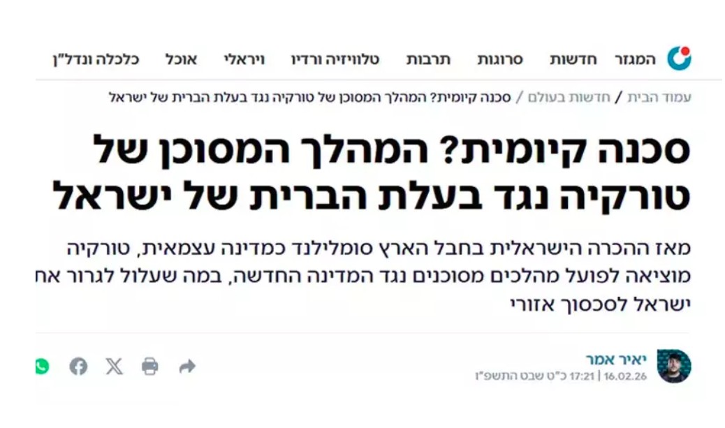İsrail’in Somaliland kararı sonrası Türkiye’nin bölgedeki hareketliliğini tehlikeli bulan Srugim, analizinde şu ifadelere yer verdi: