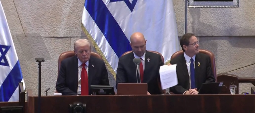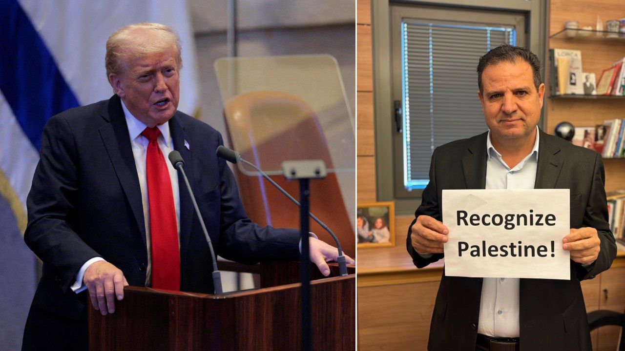 ABD Başkanı Donald Trump, Gazze barışına destek amacıyla İsrail’e yaptığı ziyarette Knesset’te konuşma yapmak üzere geldi. Milletvekilleri Ayman Odeh ve Ofer Cassif, İsrail Parlamentosu'nda “Filistin’i Tanıyın!” yazılı büyük bir pankart açarak dikkat çekici bir protestoya imza attı. Ancak bu eylemleri üzerine hızlı bir şekilde müdahale edilerek salon dışına çıkarıldılar.